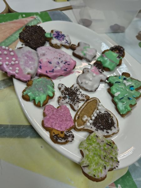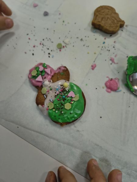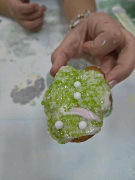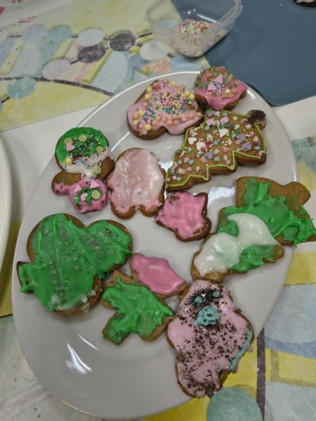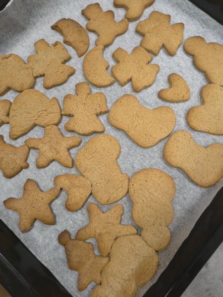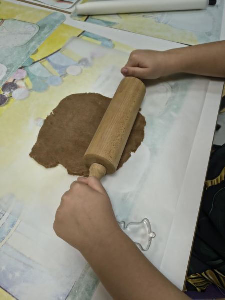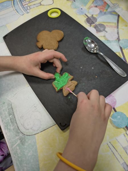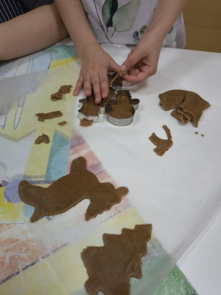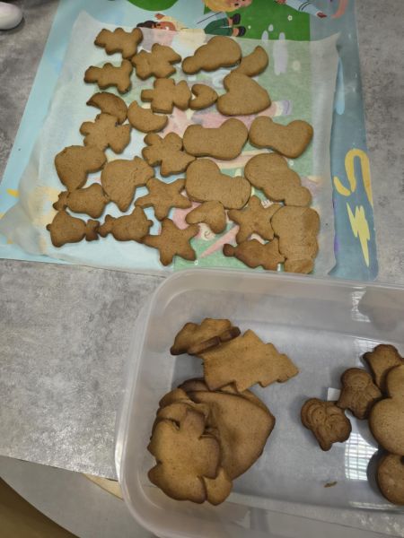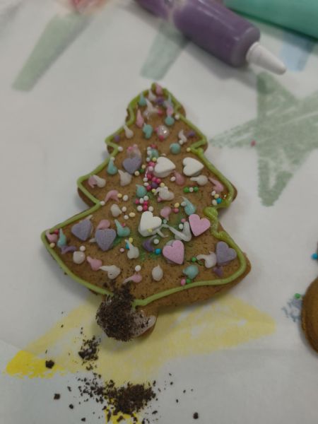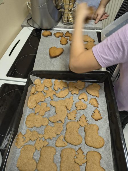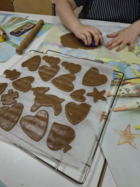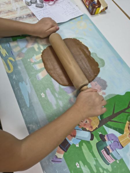 Po lekturze fragmentu zbioru "Całuski Pani Darling" Małgorzaty Musierowicz o piernikach pieczonych w Bullerbyn, uczniowie zabrali się za pieczenie i ozdabianie własnych pierniczków, przy dźwiękach gwiazdkowych utworów. Zajęcia odbyły się gościnnie w Laboratorium Przyszłości.