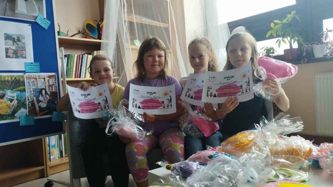 Dużo było śmiechu..., rozmów..., czasem zaskakujących pytań... A wszystko przy stole pełnym kolorowych filców, nici i dobrych chęci, by coś komuś od siebie dać. Tak działało w tym roku nasze Biblioteczne Koło Kreatywne . Podczas naszych zajęć szyliśmy ręcznie małe maskotki-emotki. Przed świętami były choinki i jajka, wiosną motyle, serduszka szyliśmy okrągły rok. W ramach działalności Koła realizowaliśmy także projekt Emotkowe Pożeracze Smutków czyli tworzyliśmy małe pocieszki - emotki w celu przekazania ich tym osobom, którym z jakiegoś powodu może być w życiu trudniej.