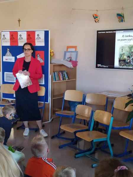 Uczniowie poznali ją czytaną przez Wojciecha Pszoniaka w formie filmu. Następnie wersję bardziej współczesną przedstawiła klasa 8B w mini przedstawieniu teatralnym, co bardzo spodobało się młodszej publiczności. Zachwyciła ich również możliwość wcielenia się w Janka i "uszycie" butków dla psów, choć tylko na papierze. Na koniec każdy uczestnik dostał pamiątkową pieczęć przygotowaną przez organizatora, czyli Kancelarię Prezydenta RP.