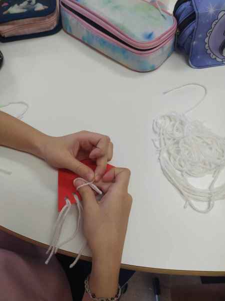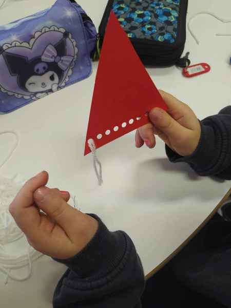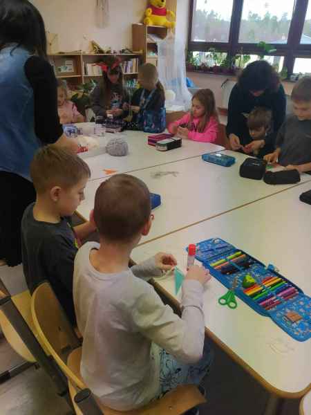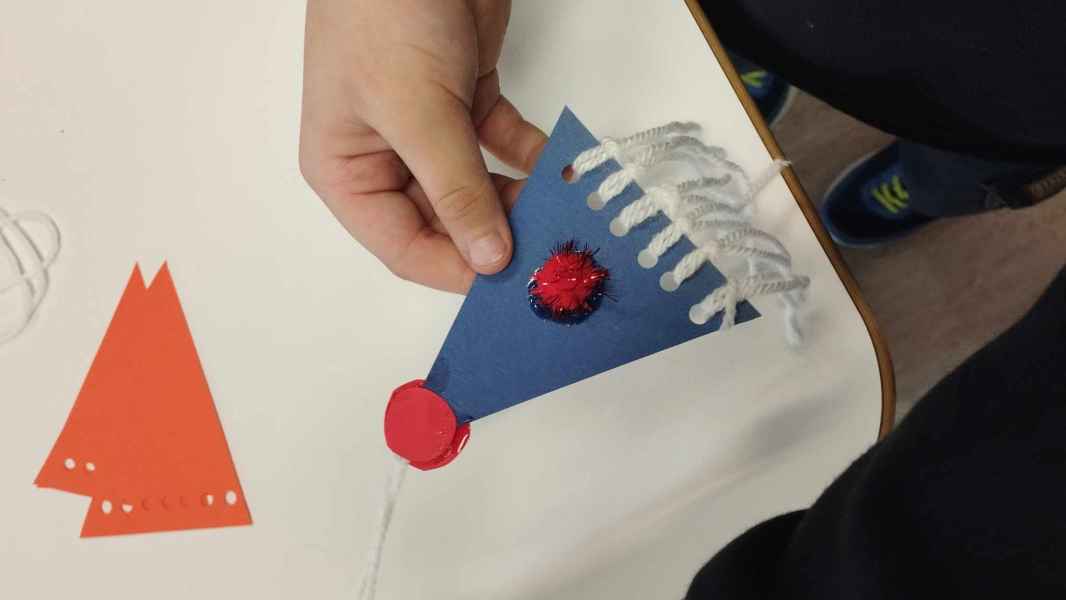 Następnie rozmawialiśmy o rytuałach wieczornych, o zapachach wyciszających, pomagających zasnąć, ale także o tych, które dodają nam energii, wąchaliśmy lawendę, jodłę, miętę i pomarańczę. Zapach pomarańczy wraz z aromatami goździków i cynamonu skłonił nas do rozmowy o zapachach świątecznych. Dzieci bezbłędnie rozpoznały korzenne przyprawy. Na zakończenie każdy uczeń i uczennica wykonali swojego, brodatego skrzata, który ozdobi wkrótce świąteczne drzewko.