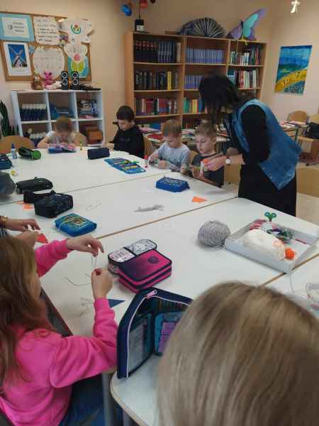 Spotkanie ze skrzatem, który nie śpi ("Skrzat nie śpi" Astrid Lindgren) to druga odsłona świątecznych warsztatów w bibliotece. Z klasami drugimi rozmawiamy o tym, dlaczego musimy spać, co pomaga nam zasnąć, zaśpiewaliśmy sobie także kołysanki, śpiewaliśmy również te szczególne: kołysanki-kolędy (Gdy śliczna Panna... Lulajże Jezuniu).