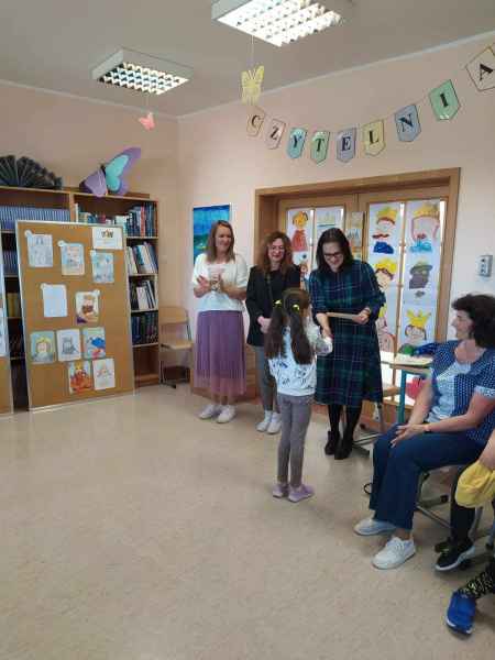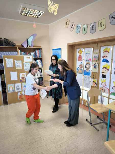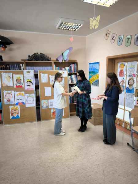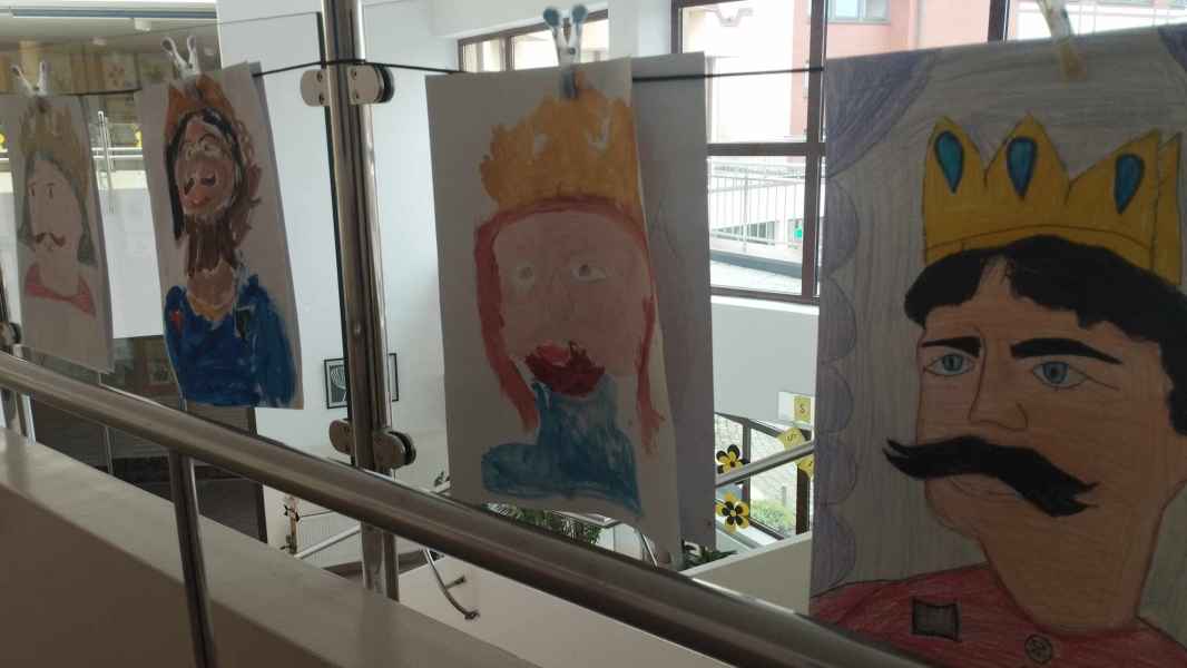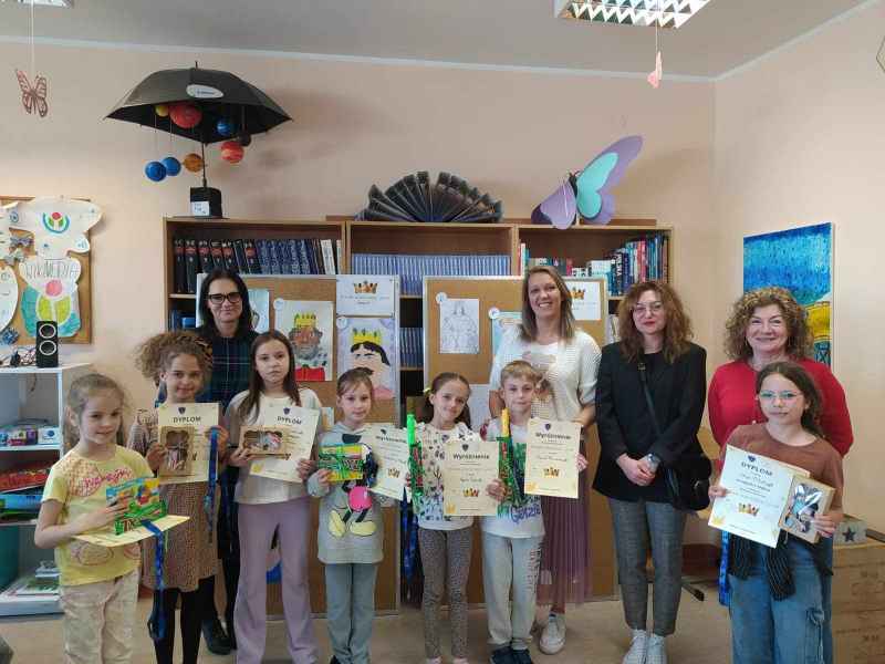 Wspólny projekt historyczno-biblioteczny "Dzień w koronie" został wczoraj dopełniony rozstrzygnięciem szkolnego konkursu plastyczno-historycznego "Polskie koronowane głowy". Konkurs podzielony był na 2 kategorie: klasy 1-3 i 4-8.