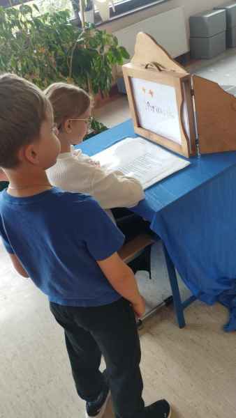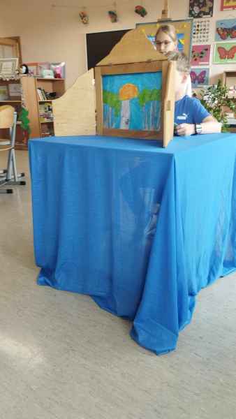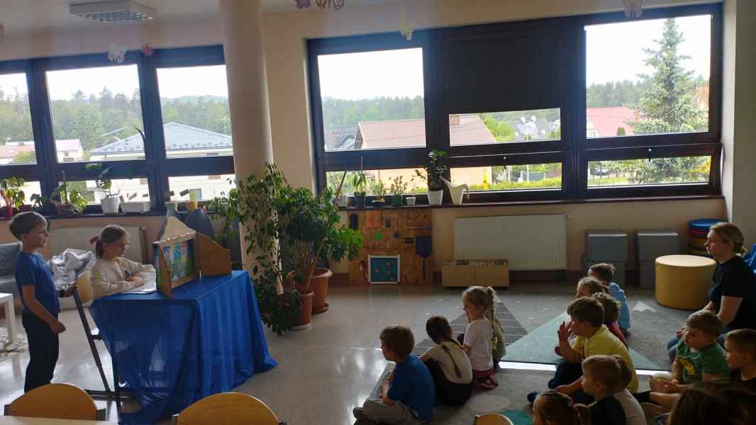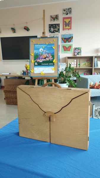 Przez cały rok szkolny, grupa dzieci ze świetlicy szkolnej pracowała nad utworzeniem nowej bajki w stylu teatrzyku japońskiego kamishibai. Najpierw prace przebiegały nad wymyśleniem treści, wyboru bohaterów, ich charakterystyki i przygód. Następnie autorzy samodzielnie ilustrowali karty książki. Pracy było dużo! W końcu mogli zaprezentować swoje dzieło młodszym uczniom naszej szkoły i pobliskiego przedszkola.