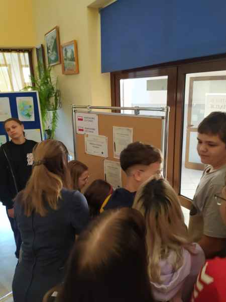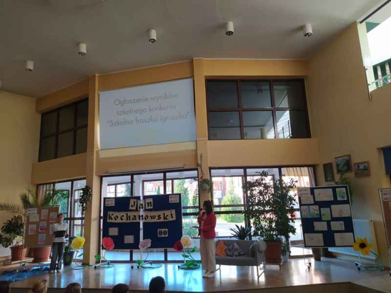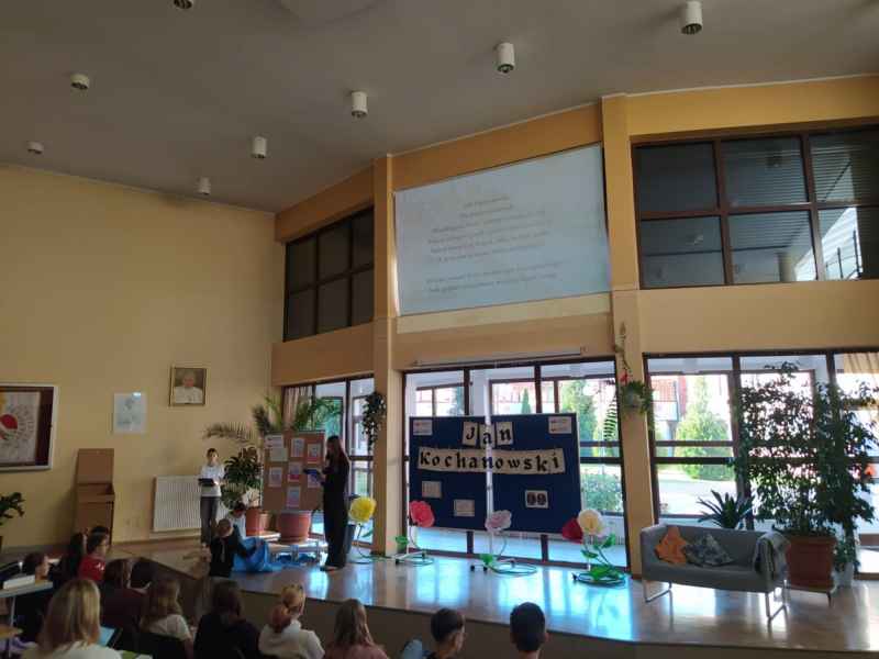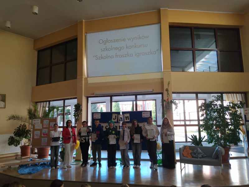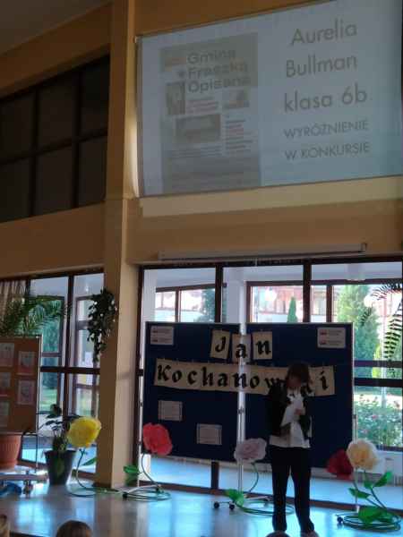 Podczas spotkania rozstrzygnęliśmy również konkurs na utworzenie fraszki o tematyce szkolnej organizowany przez bibliotekę. Po odczytaniu werdyktu jury, laureaci odczytali swoje dzieła. Na koniec spotkania uczennica klasy 6B zaprezentowała swoją fraszkę, która została wyróżniona w gminnym konkursie Biblioteka i Centrum Kultury Gminy Wejherowo "Gmina Fraszką Opisana" .