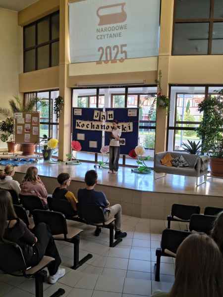 Jak czytaliśmy dzieła Jana Kochanowskiego? Dzieci z młodszych klas - kolorując portrety i ilustrując fraszki, starsi uczniowie - czytając głośno, biorąc udział w warsztatach pisania fraszek oraz prezentując mini scenki fraszkowe . Takie było Narodowe Czytanie 2025 w naszej szkole, którego finał odbył się właśnie dziś.
