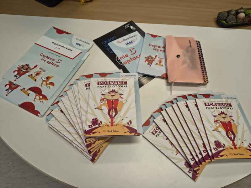 Czy czytanie się opłaca? Jaki prezent możemy sprawić samemu sobie i jeszcze za niego nie musieć płacić? Czy najdroższy prezent zawsze jest najcenniejszy? Tego próbowaliśmy dociec z uczniami klas pierwszych podczas warsztatów czytelniczych zakończonych pasowaniem na czytelnika. Uczestnicy spotkania wysłuchali pierwszych stron książeczki "Porwanie Pani Złotówki" Justyny Bednarek, a dzięki Fundacji Powszechnego Czytania otrzymały egzemplarze w prezencie w ramach akcji "Czytanie się opłaca" organizowanej wraz z Bankiem Pekao S.A.