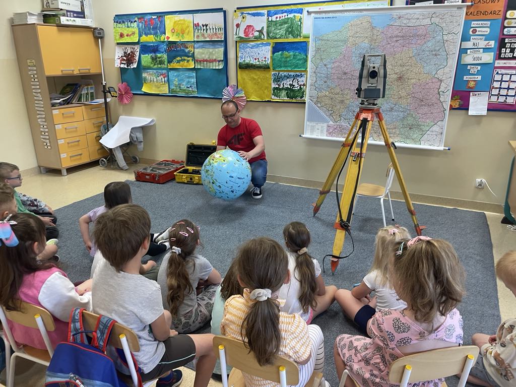Kim jest geodeta? Na czym polega jego praca? Jak tworzy się mapy? Gdzie jest mój dom na mapie Bolszewa? Na te i inne pytania ciekawie odpowiadał grupie 0b tata naszego ucznia, pan Paweł Byczk, któremu serdecznie dziękujemy!