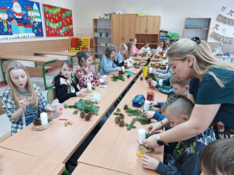 Okres przed Bożym Narodzeniem to czas, w którym szczególnie chętnie przygotowujemy samodzielnie ozdoby i dekoracje świąteczne. Tak też było w klasie 2C, w której odbyły się warsztaty świąteczne, zorganizowane przez Radę Rodziców, a prowadzone przez Panią Elżbietę Basaj-Hadam.