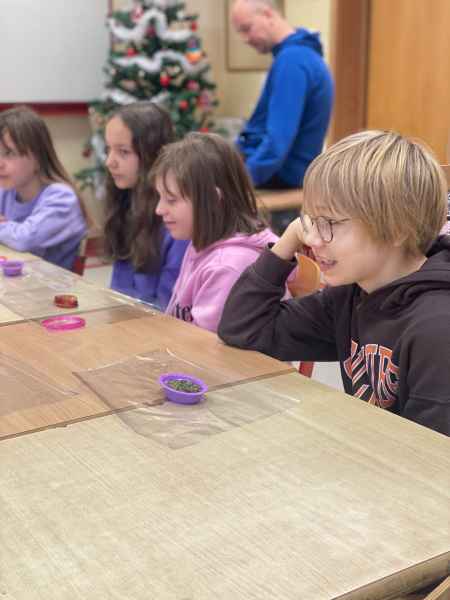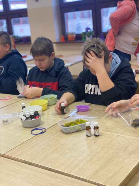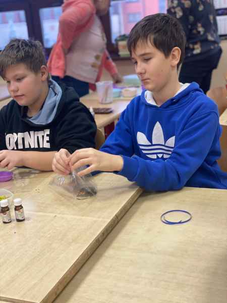 Podczas warsztatów uczniowie wykonali na kiermasz świąteczny pachnące mydełka oraz dodatkowo wykonali i zabralido domu nie tylko zrobione przez siebie produkty, ale także nowe umiejętności.