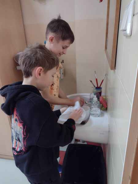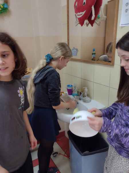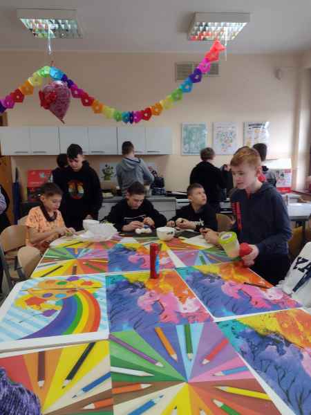 Dziewczęta podziękowały chłopcom za przygotowaną niespodziankę. Poniższe zdjęcia ukazują zaangażowanie i radość z możliwości własnoręcznie wykonanej pracy.