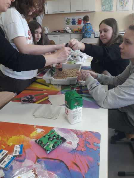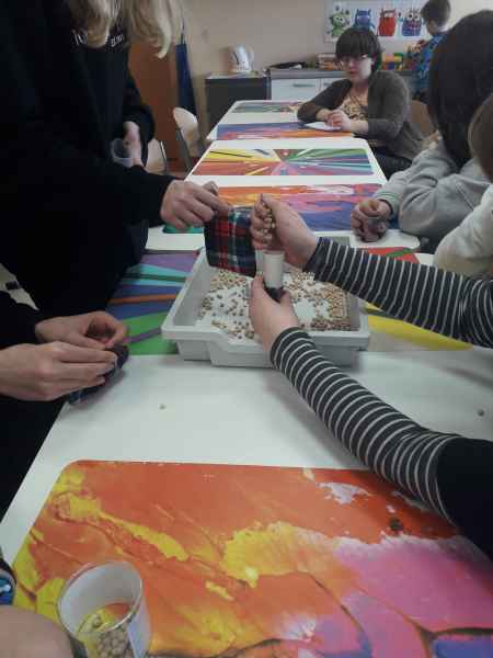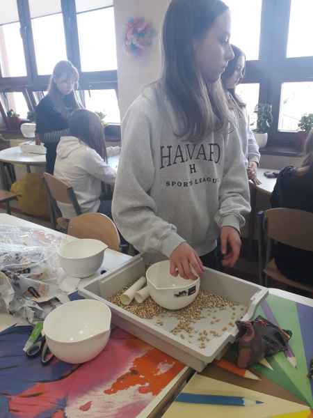 Klasa VIII c z instruktorem krawiectwa panią Anną Bank-rodzicem oraz wychowawcą Bożeną Reszke postanowiła uszyć w Laboratorium Przyszłości woreczki wypełnione grochem oraz ryżem. Woreczki doskonale nadają się do ćwiczeń gimnastyki korekcyjnej jak i zabawy.
