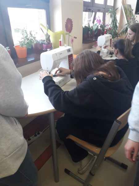 Celem warsztatów było -rozwijanie umiejętności obsługi maszyny do szycia oraz podarowanie swoich uszytych woreczków dla dzieciom z klas młodszych do wykorzystania na lekcjach w-f.