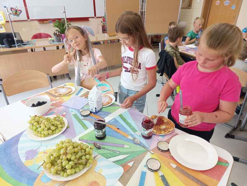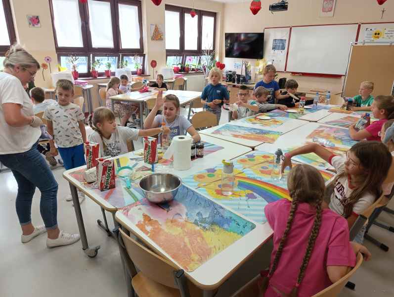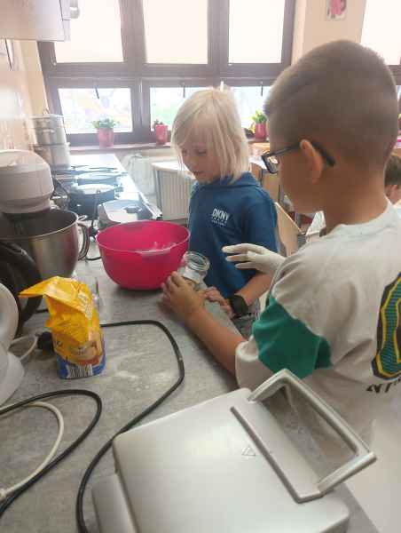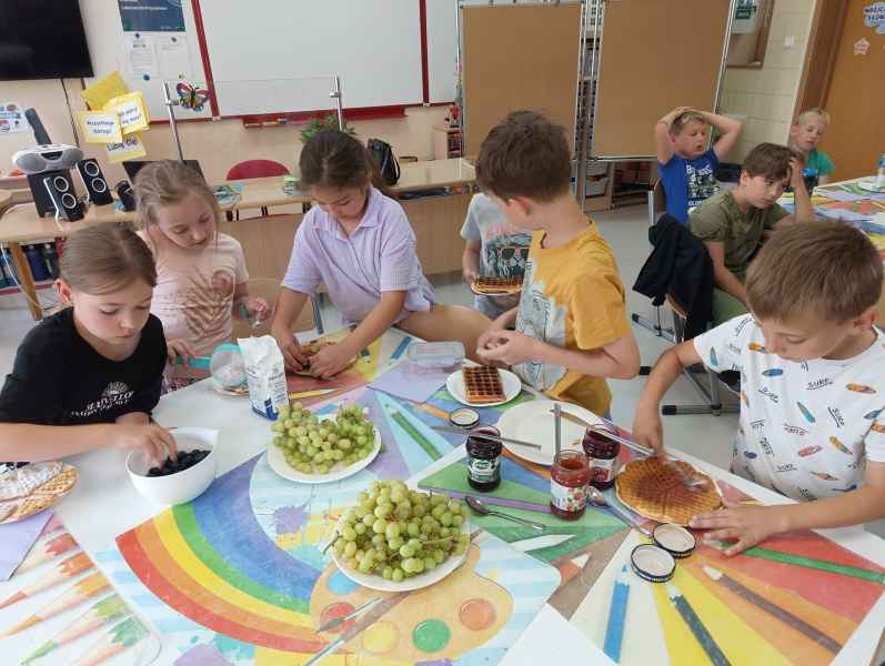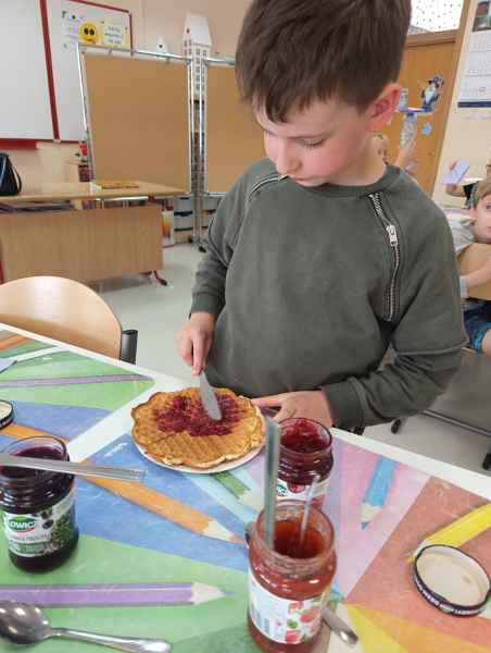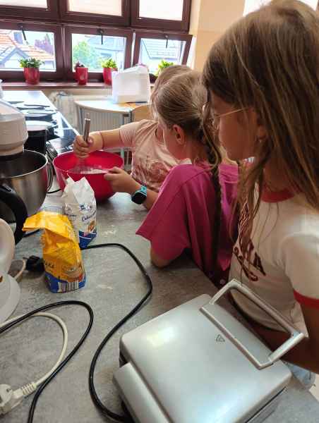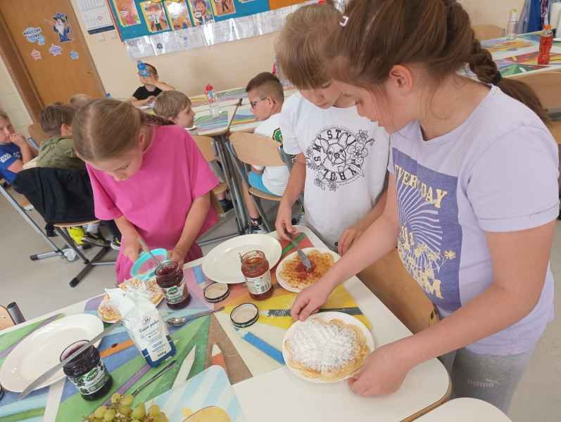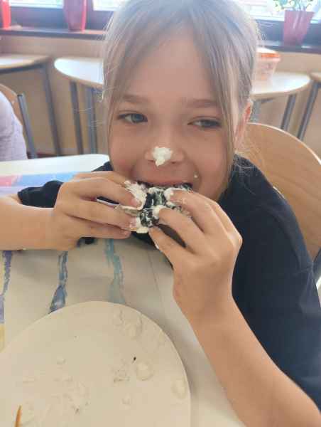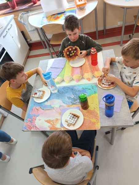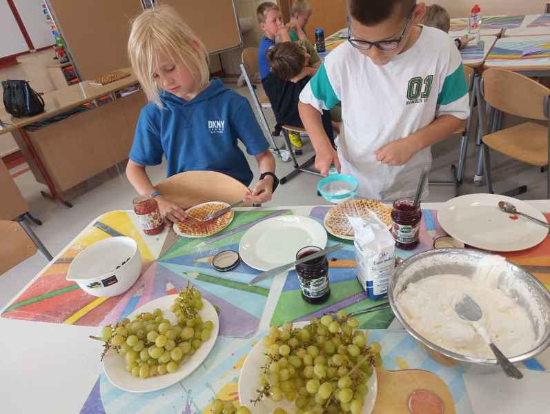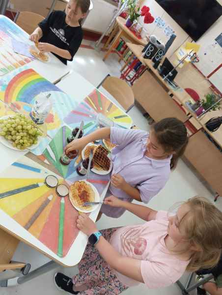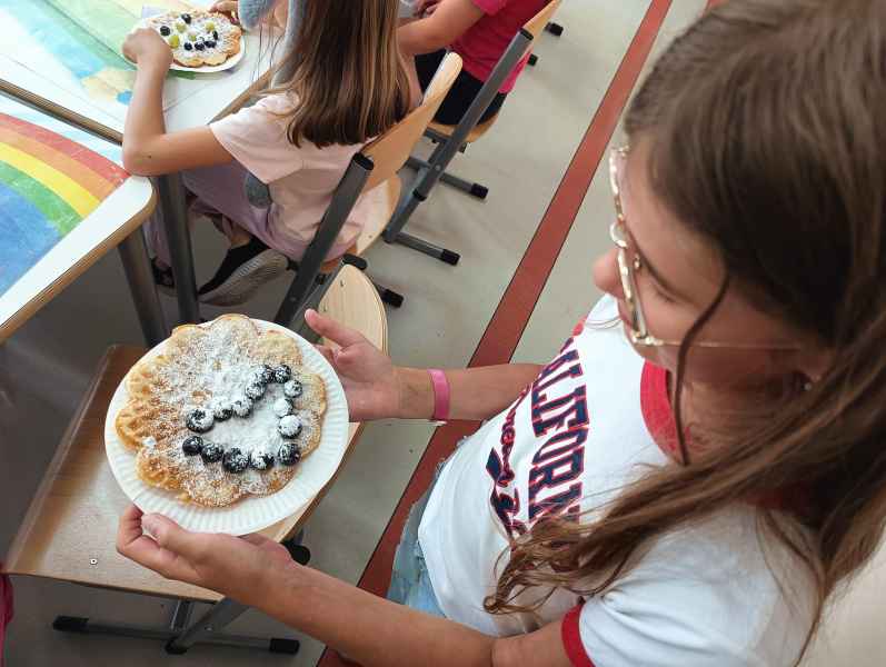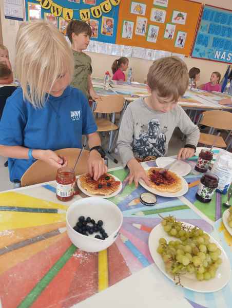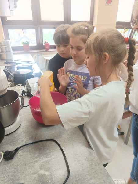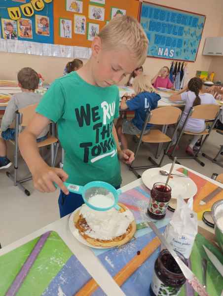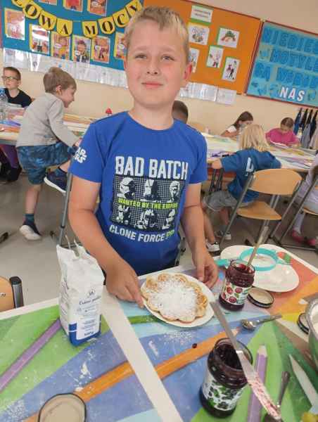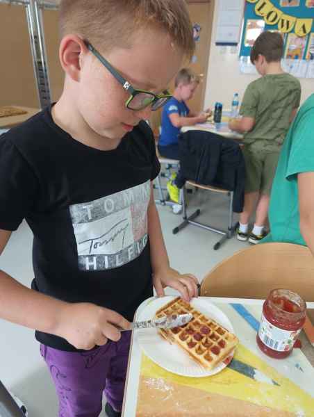 W piątek 7 czerwca br. uczniowie klasy 2d przy pomocy wspaniałych mam: Pani Natalii oraz Pani Jolanty mieli okazję samodzielnie przygotować, udekorować i co najważniejsze skosztować gofrów wykonanych w naszym szkolnym Laboratorium Przyszłości. Przy okazji tego wydarzenia, dzieci dowiedziały się jak ważne są proporcje, bezpieczeństwo pracy oraz znajomość jednostek wagi i objętości. Słodko dziękujemy rodzicom za współpracę i smacznie zapraszamy do obejrzenia galerii zdjęć.