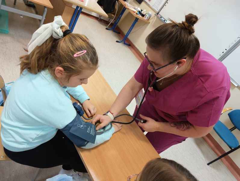 Dnia 30 stycznia br. klasa 3d miała zaszczyt gościć Panią Natalię Modzelewską, mamę naszej uczennicy. Ta pełna wrażeń wizyta miała na celu nie tylko wzmocnienie współpracy rodziców ze szkołą, ale nade wszystko poznanie zawodu opiekuna medycznego. Pani Natalia opowiadała o swoich obowiązkach z zaangażowaniem, gdzie widać było spełnienie i wielkie serce.