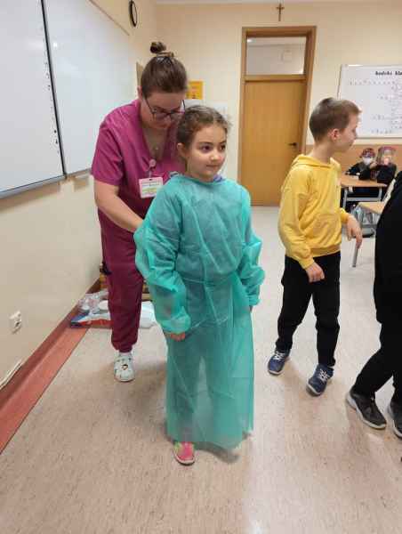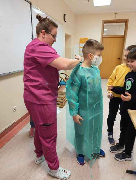 Ta fascynująca wizyta była wspaniałą lekcją nauki pierwszej pomocy, empatii oraz zachętą do pomocy drugiemu człowiekowi i spróbowania swoich sił by pełnić tę piękną, ale też i trudną pracę. Jeszcze raz serdecznie dziękujemy Pani Natalii za poświęcony czas, naukę i zaangażowanie na rzecz uczniów naszej szkoły.