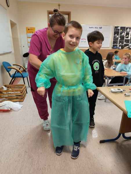 Uczniowie na własnej skórze mieli możliwość doświadczenia i poznania akcesoriów, sprzętów i odzieży medycznych.