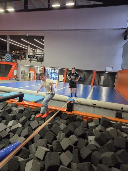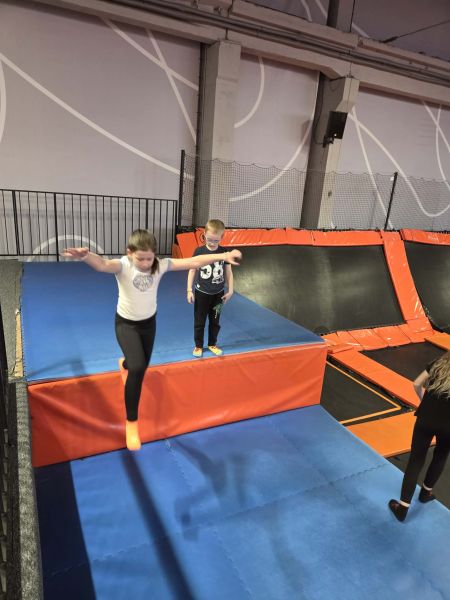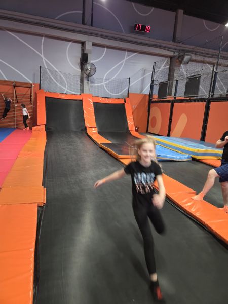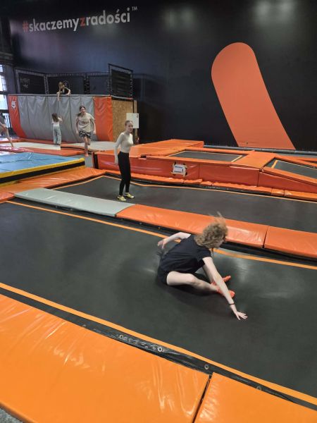 Po lekcji historii nadszedł czas na aktywność fizyczną. Dzięki wspaniałomyślności Rady Rodziców naszej szkoły uczniowie mogli spełnić swe marzenia o lataniu w parku trampolin Jumpcity w Gdańsku, skacząc na trampolinach, do basenu z gąbkami, ćwicząc wsady do koszów i korzystając z licznych atrakcji.