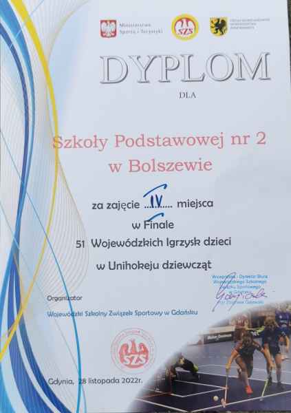 Wysokie IV miejsce przywiozły dziewczyny z 51 Finału Województwa Pomorskiego Igrzysk Dzieci w Unihokeju Dziewcząt.