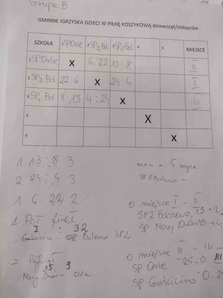 15 mrca w naszej szkole dobyły się Gminne Igrzyska Dzieci w piłce koszykowej. Na zawody przybyło 6 drużyn, które rozgrywały mecze w dwóch grupach. Po nich półfinały i fiinał. O pierwsze mejsce walczyli zawodnicy z naszej szkoły i Nowego Dworu, o trzecie uczniowie z Orla i Gościcina.