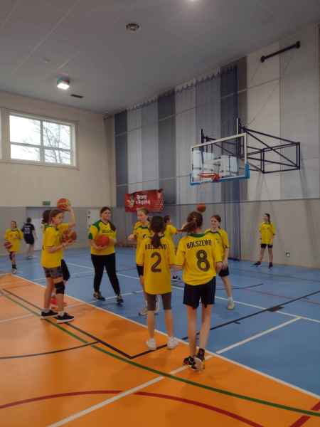 W Szkole podstawowej nr 1 w Bolszewie odbyły się Gminne Igrzyska Dzieci w piłce koszykowej. Na zawody przybyły reprezentacje sześciu szkół. Tradycyjnie zostały one podzielone na dwie grupy. Nasze uczennice wylosowały SP nr1 z Bolszewa oraz SP z Nowego Dworu. Obydwa mecze wygrały, choć było trudno, bo po dogrywce. Następnie krzyże i wygrany mecz z zawodniczkami z Gościcina.