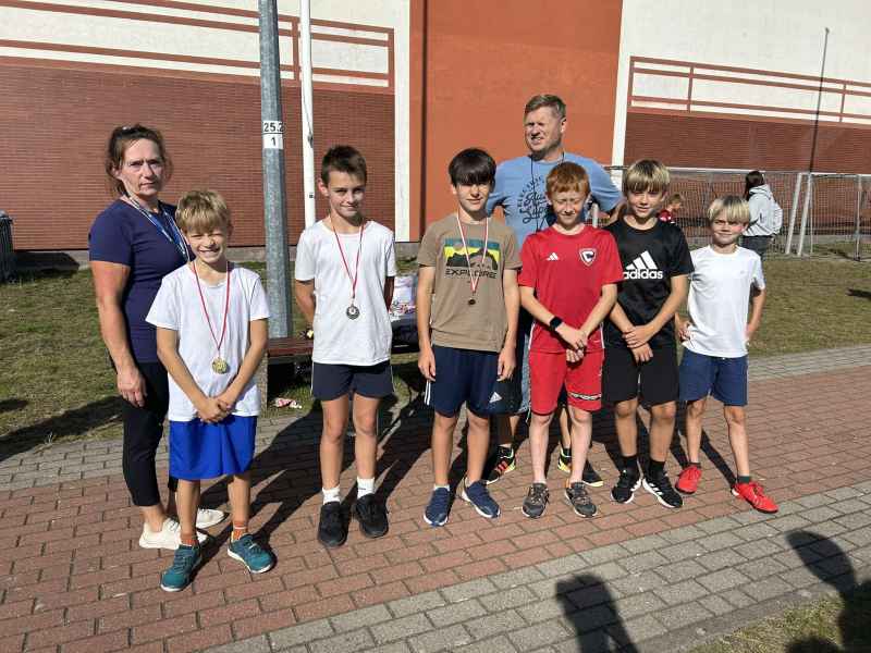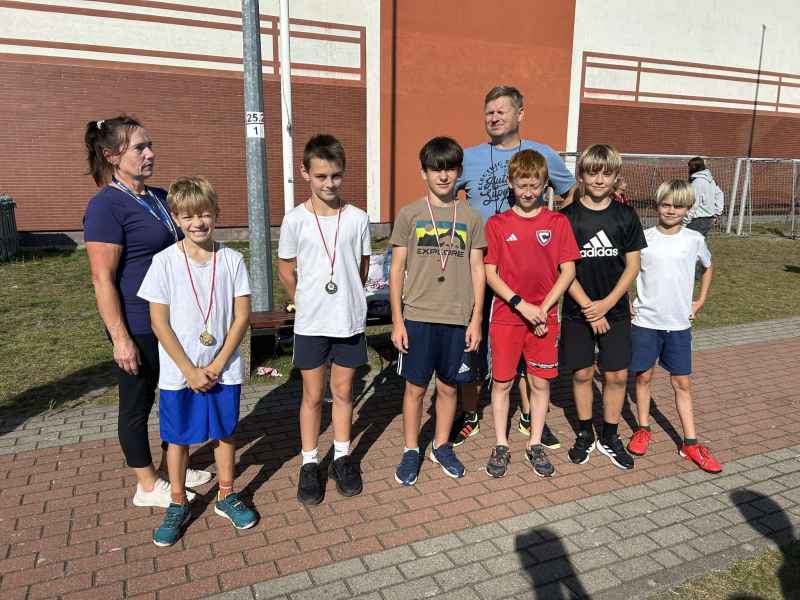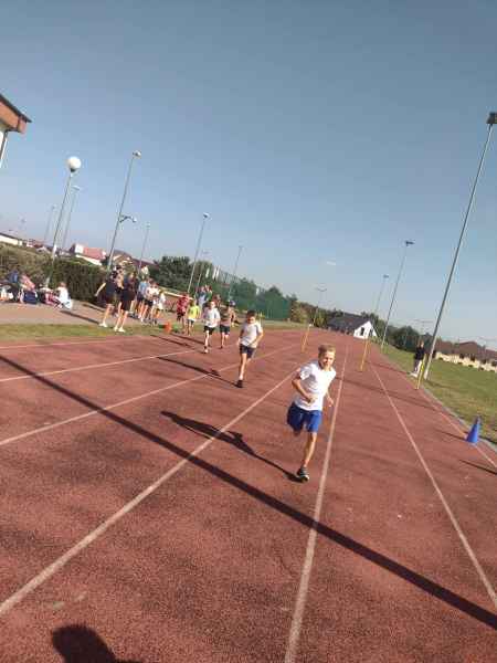 Atmosfera była gorąca na boisku, wśród uczestników i kibicujących. Najlepsza trójka zawodników otrzymała medale, a szóstka będzie reprezentowała naszą szkołę w zawodach gminnych.