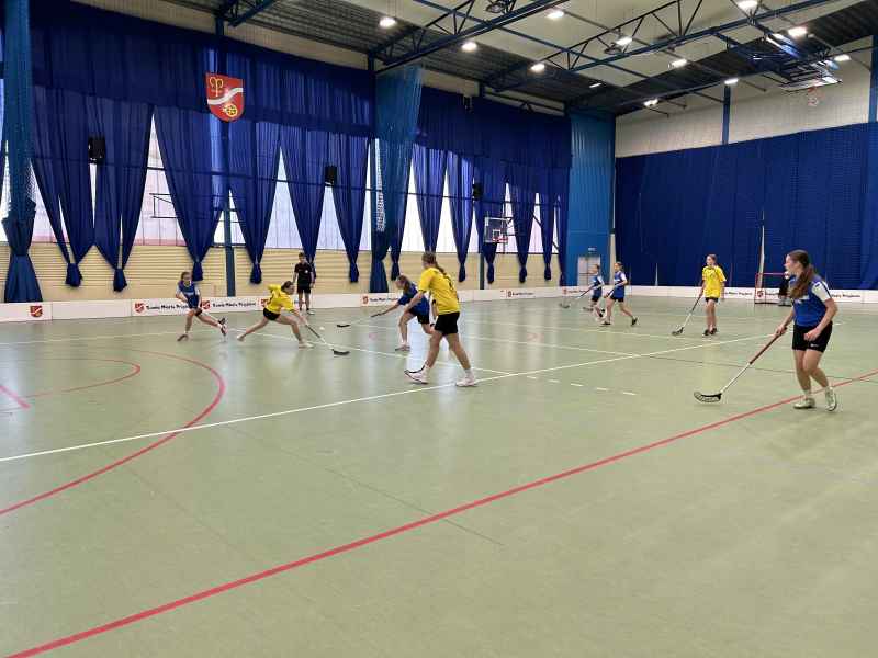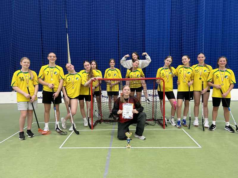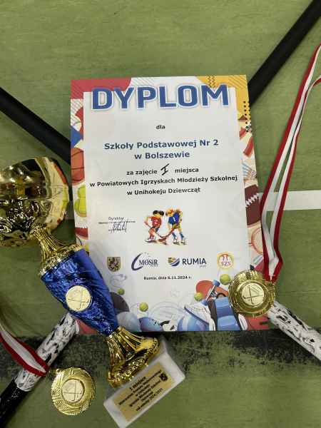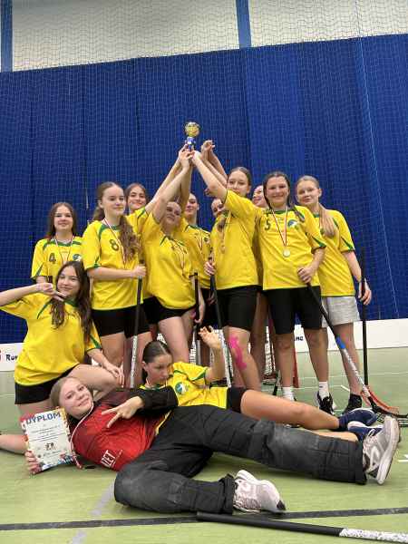 Dnia 6.11.2024 r. w hali sportowej MOSiR Rumia odbyły się Powiatowe Igrzyska Młodziezy Szkolnej w Unihokeju Dziewcząt. Na turniej stawiło się 8 drużyn z naszego powiatu, które podzielono na 2 grupy. Nasze dziewczyny trafiły do grupy B i wygrały wszystkie swoje mecze: z SP Bożepole 2:0, SP 11 Wejherowo 2:0 i z SP Pobłocie 3:1. Tak znakomity bilans zagwarantował nam pierwsze miejsce w grupie B. W półfinale spotkaliśmy się z drużyną z SPSS Rumia.