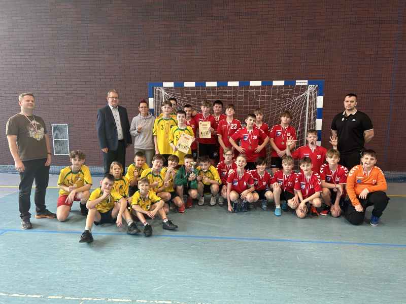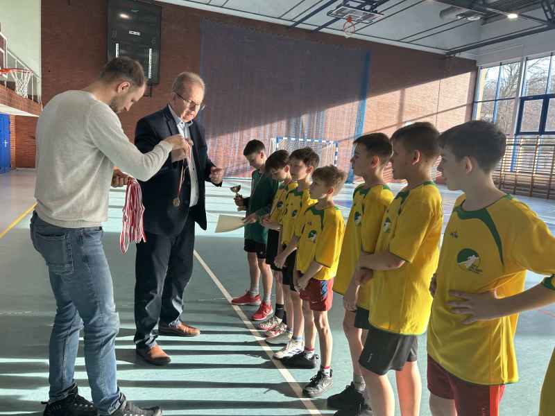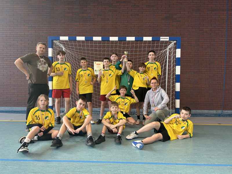 W półfinale pokonaliśmy po bardzo dobrym meczu drużynę z SP3 Reda 6:1. W meczu o złoty medal zmierzyliśmy się ponownie z SP2 Luzino, które niespodziewanie ograło ekipę z SP11 Wejherowo po serii rzutów karnych. Od początku finałowego starcia ruszyliśmy mocno i z energią. Do przerwy prowadziliśmy już 4:0. Druga połowa już toczyła się w wolniejszym tempie. Nasi szczypiorniści pewnie pokonali SP2 Luzino 5:1. Mamy złoto!!!