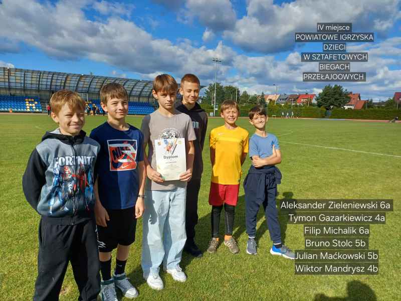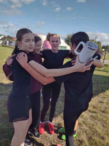 oraz dziewczynki młodsze z SP1 z Bolszewa i chłopcy starsi z SP Gościcino. Nasze drużyny spisały się najlepiej. Chłopcy zajęli IV miejsce, a dziewczęta II. Chłopcy walczyli dzielnie do końca, padali na metę i byli o krok od medalu. Dziewczęta pobiegły rewelacyjnie do ostatniej zmiany biegły równo z Bojanem, ostatecznie zajęłyśmy II miejsce wyprzedzając kolejno szkoły z: Redy, Rumii, Wejherowa i Kębłowa.