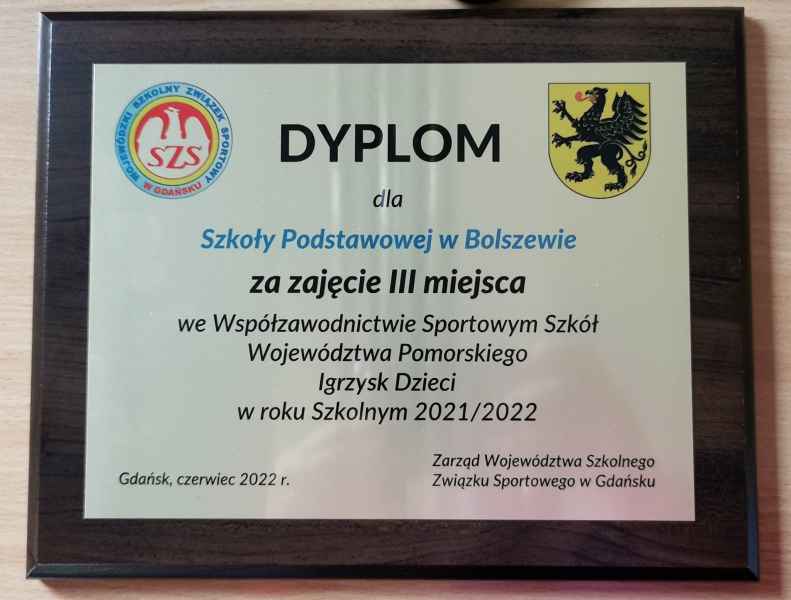 W roku szkolny 2021/2022 uczniowie klas 4-6 dwóch szkół z ulicy Szkolnej i Leśnej zajęli III miejsce we współzawodnictwie sportowym. GRATULACJE DLA WSZYSTKICH, TO OGROMNY SUKCES! Biorąc pod uwagę, iż w rywalizacji sportowej startowało ponad 300 szkół naszego województwa.