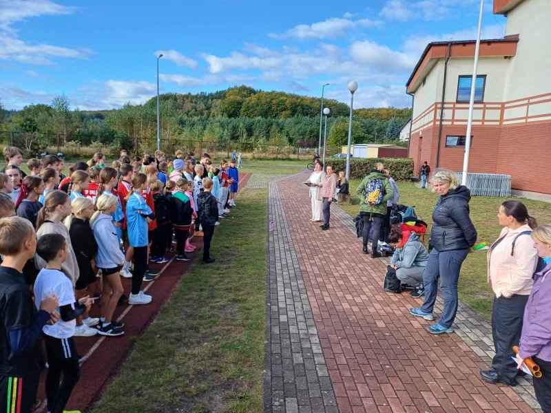 Dziś na terenie naszej szkoły odbyły się GMINNE IGRZYSKA W SZTAFETOWYCH BIEGACH PRZEŁAJOWYCH młodzieży oraz dzieci. Na zawody przyjechały reprezentacje pięciu szkół: SP1 z Bolszewa, Orle, Gowino, Gościcino oraz reprezentacja naszej szkoły. Każdy zawodnik musiał pokonać określony dystans, następnie przekazywał pałeczkę sztafetową kolejnemu zawodnikowi i tak sześć razy. Nasi reprezentanci wygrali wszystkie biegi, tylko chłopcom starszym nie udało się i zajęli drugie miejsce.