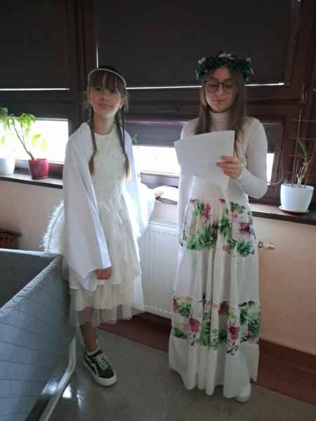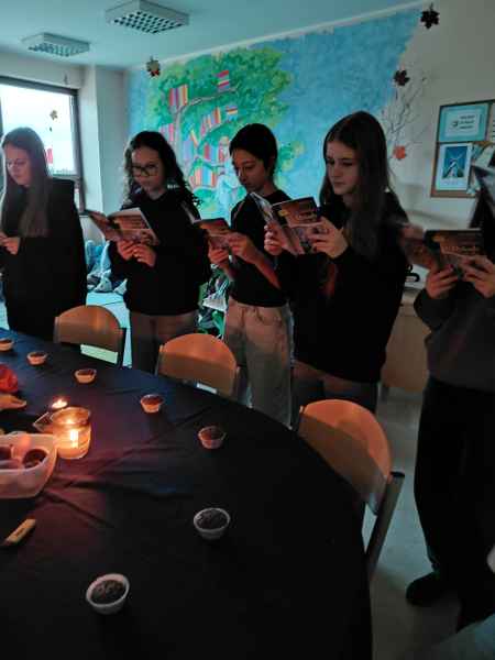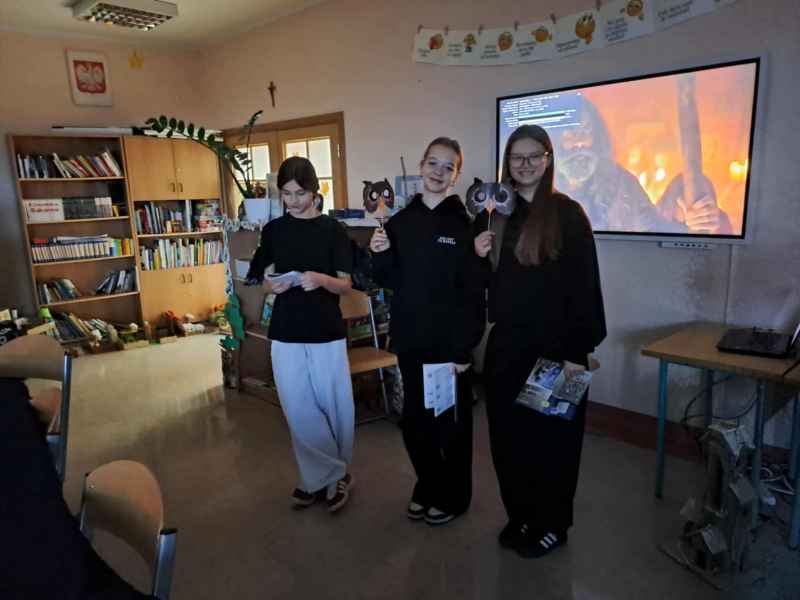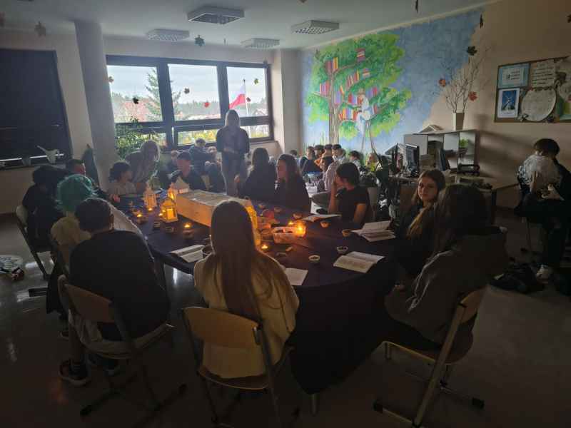 26 listopada uczniowie klasy 7F, w ramach podsumowania cyklu lekcji z dramatu romantycznego “Dziady” cz. II, przygotowali przedstawienie w czytelni szkolnej. Wydarzenie było doskonałym sposobem na utrwalenie lektury, zrozumienie nastroju, celu jaki przeświecał pogańskiemu obrzędowi.