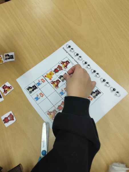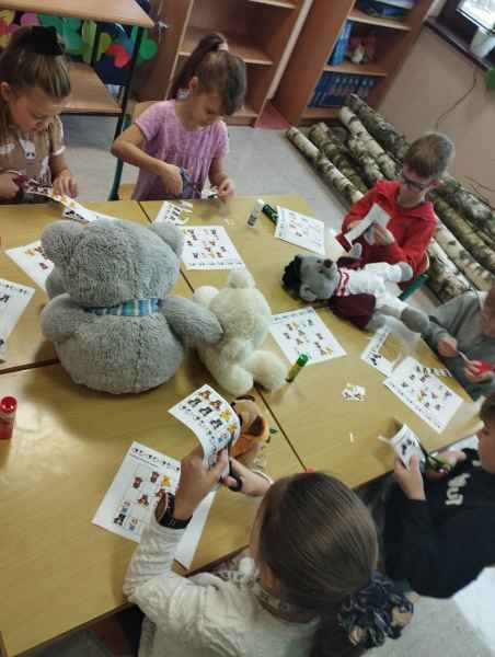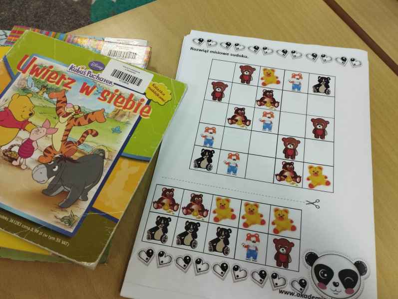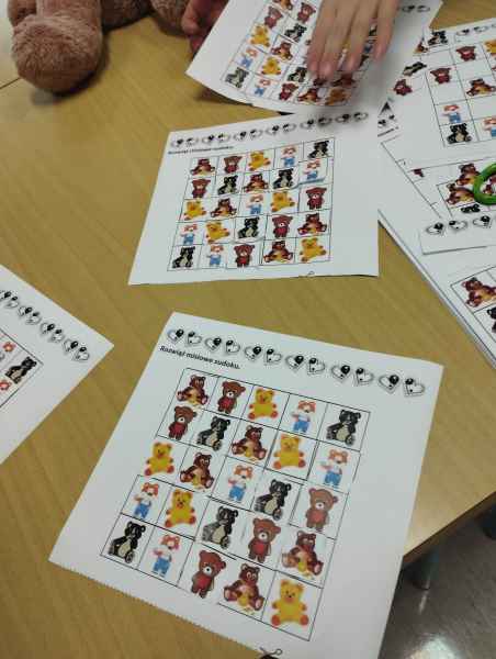 Były gry i zabawy, a na koniec rozwiązywaliśmy misiowe sudoku. Niespodzianką dla nas były odwiedziny prawdziwego Niedźwiadka, który tego dnia zamieszkał w świetlicy