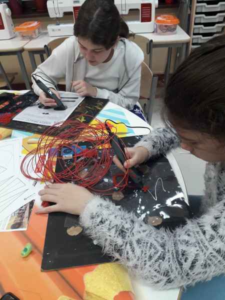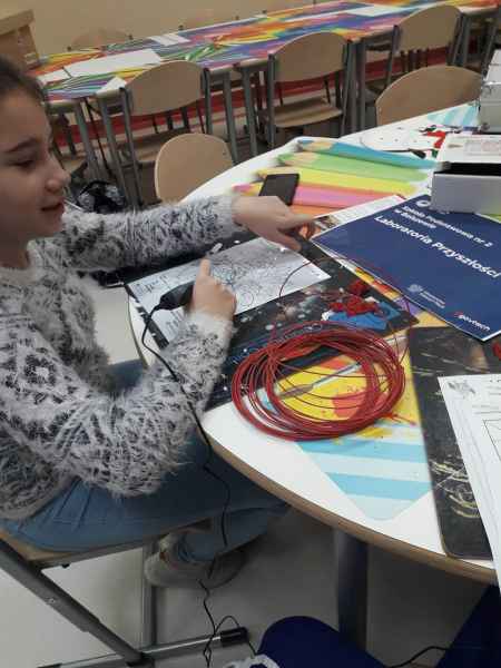 Pierwsze doświadczenie pracy z długopisem 3D wywarło na uczniach ogromne wrażenie, spowodowało wielkie skupienie. Takie nowatorskie zajęcia przygotowała pani Bożena Reszke -oligofrenopedagog.