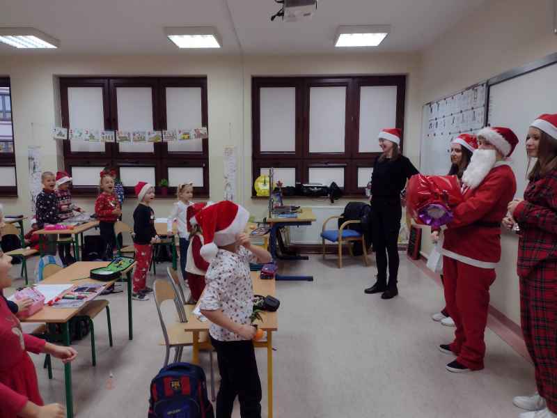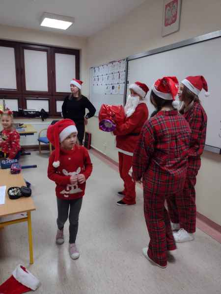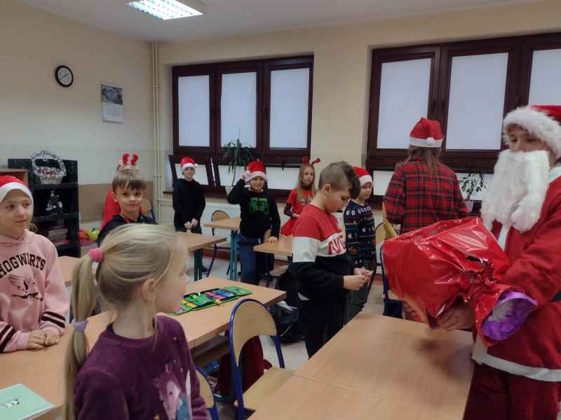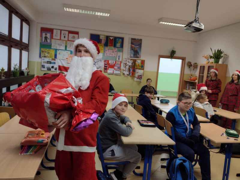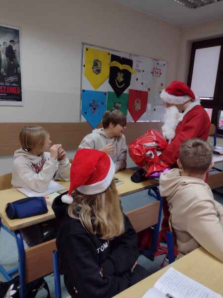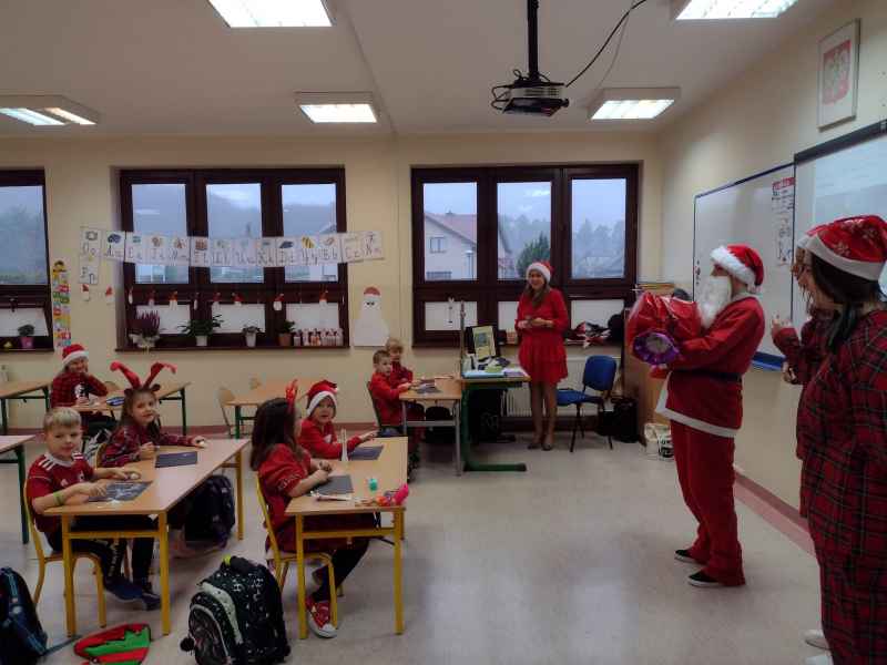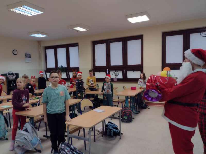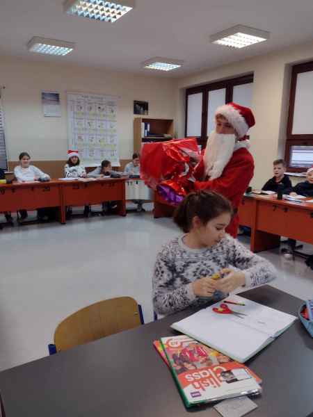Dziś Mikołajki i tradycyjnie do naszej szkoły zawitał Mikołaj. Przybył ze swoimi pomocnikami elfami. Odwiedził wszystkie klasy i każdy uczeń otrzymał słodki upominek. Uczniowie świetnie się bawili, dziękując Mikołajowi za upominki, śpiewali, bili brawo, a na ich twarzach gościł radosny uśmiech.i.