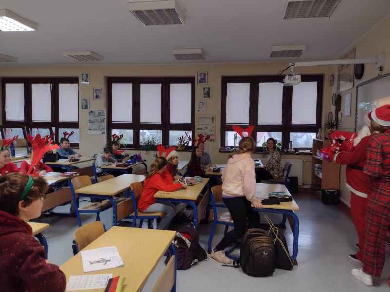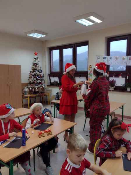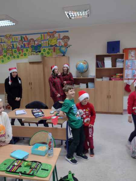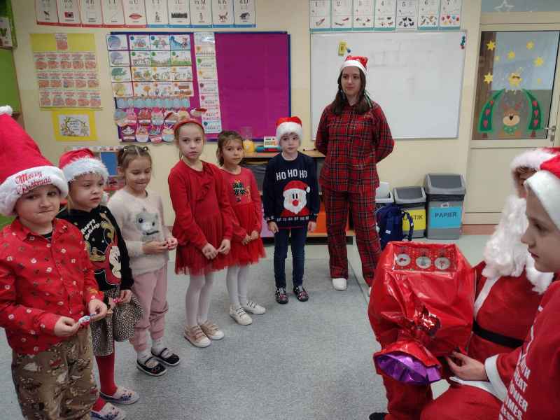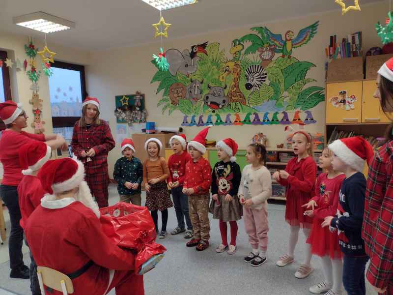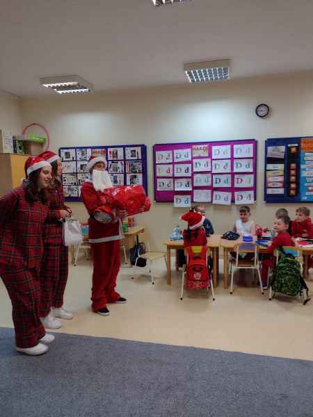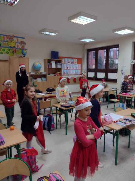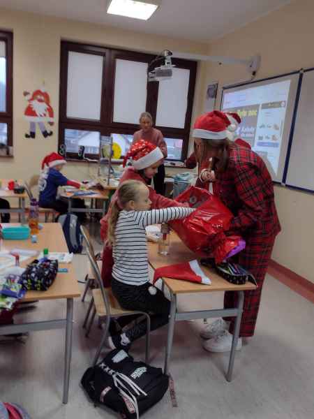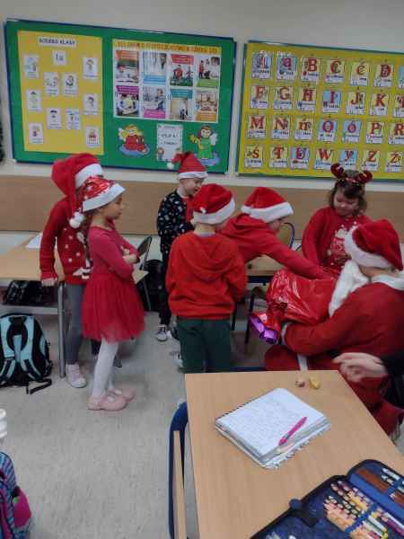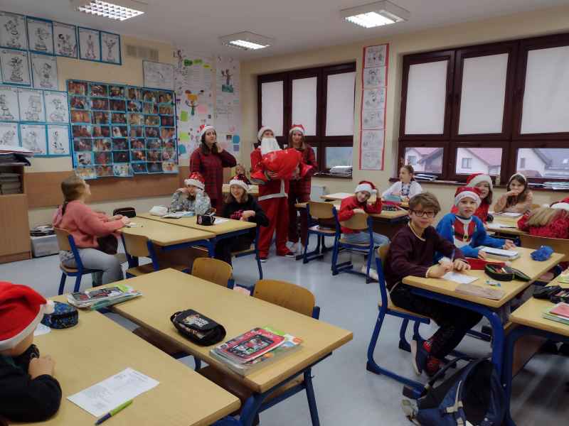 Dziś Mikołajki i tradycyjnie do naszej szkoły zawitał Mikołaj. Przybył ze swoimi pomocnikami elfami. Odwiedził wszystkie klasy i każdy uczeń otrzymał słodki upominek. Uczniowie świetnie się bawili, dziękując Mikołajowi za upominki, śpiewali, bili brawo, a na ich twarzach gościł radosny uśmiech.i.
