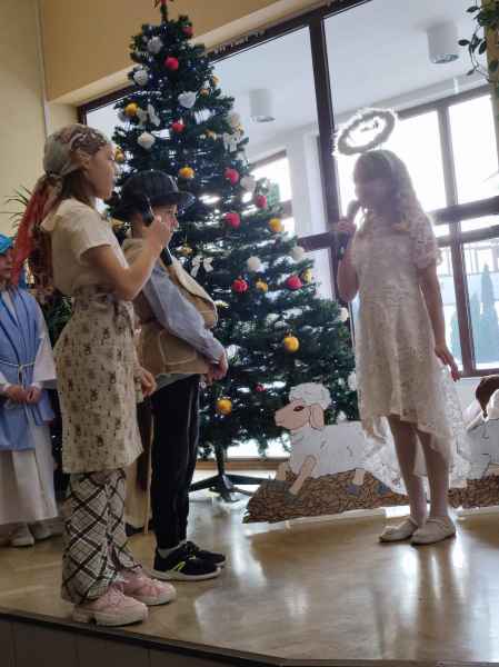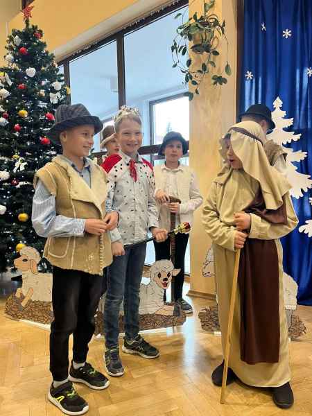 Bożonarodzeniową tradycję związaną z jasełkowym widowiskiem podtrzymują również uczniowie klasy 3f. Przedstawienie, w którym powierzone role zagrały dzieci obejrzeli ich rodzice, koledzy, nauczyciele, pracownicy szkoły oraz zaproszeni goście.