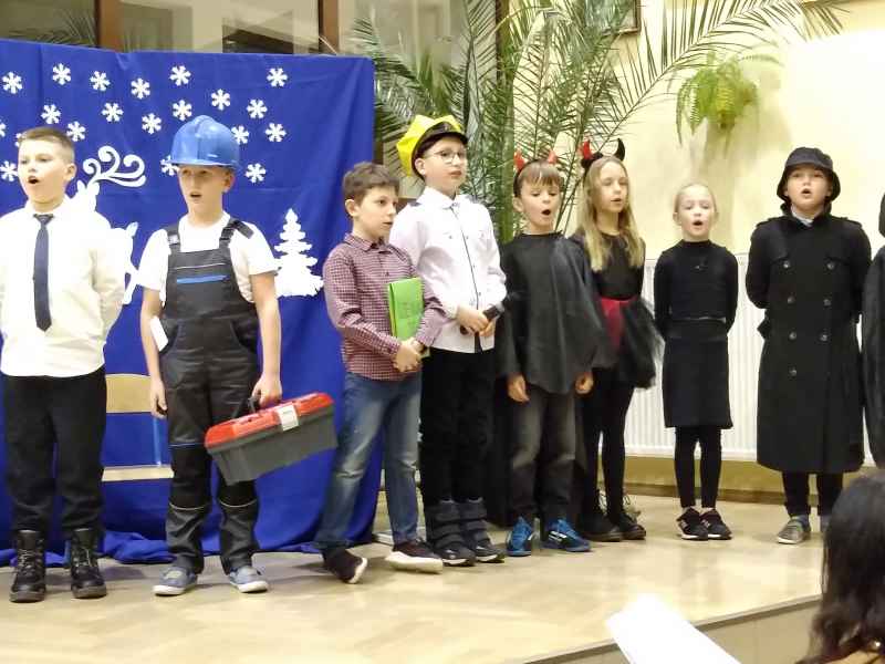 22 grudnia, tuż przed świętami, uczniowie klas młodszych mieli okazję do wspólnego przeżywania nadchodzącego Bożego Narodzenia. Uczniowie klasy 2C, pod kierunkiem P. Anity Walkusch oraz P. Aleksandry Szmidke przygotowali świąteczne przedstawienie, na które zaprosili wszystkie dzieci z klas młodszych oraz oddziałów przedszkolnych.
