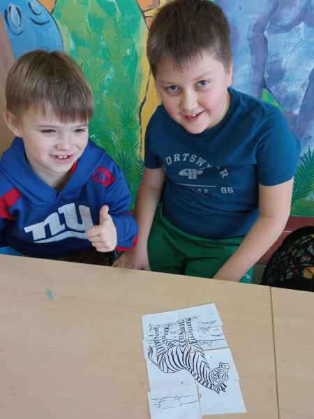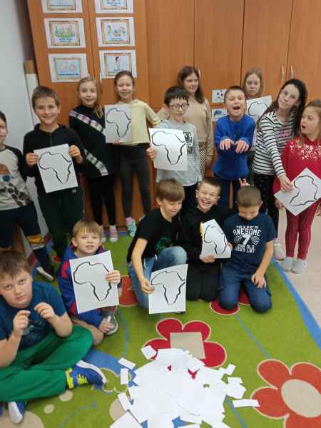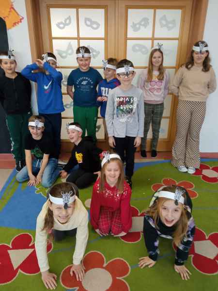 Czy zebra jest czarna w białe paski? A może zebra jest biała w czarne paski? Po co zebrze paski? Uczniowie z zaangażowaniem poszukiwali przyjaciół i mieszkańców Afryki. Doskonale bawili się także rozwiązując zagadkę - rozsypankę. Uśmiech na twarzy wywołały własnoręcznie wykonane maski i opaski - zresztą zobaczcie sami!