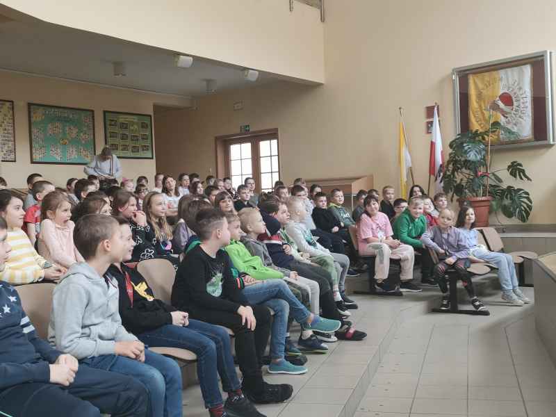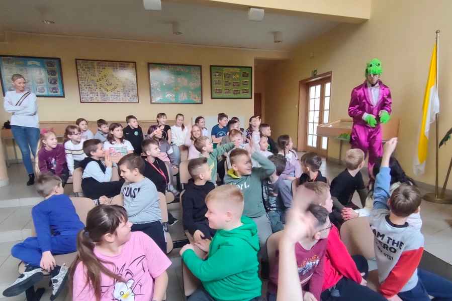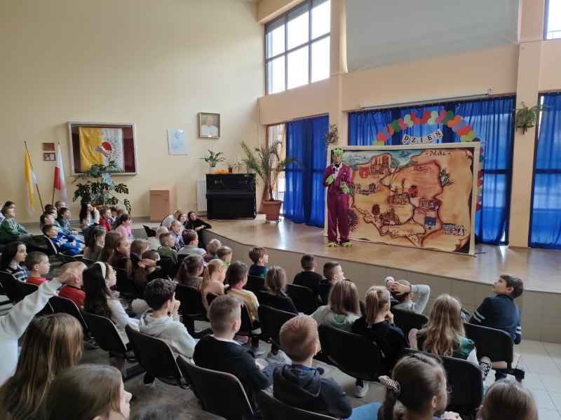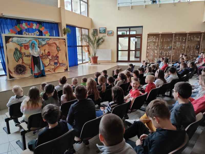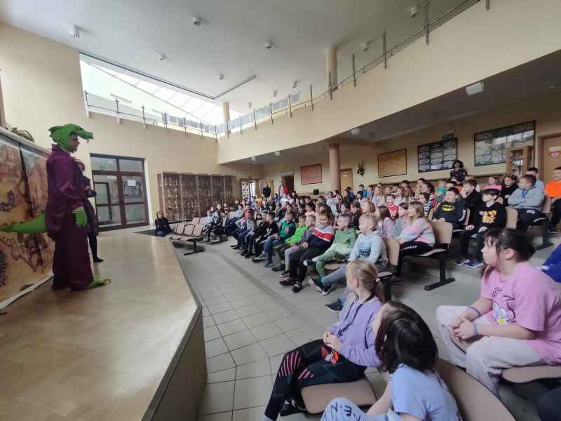 Najmłodsi uczniowie naszej szkoły mieli okazję obejrzeć wesoły spektakl pt. „Nowe przygody Smoka Wawelskiego - czyli Wisłą przez Polskę”.