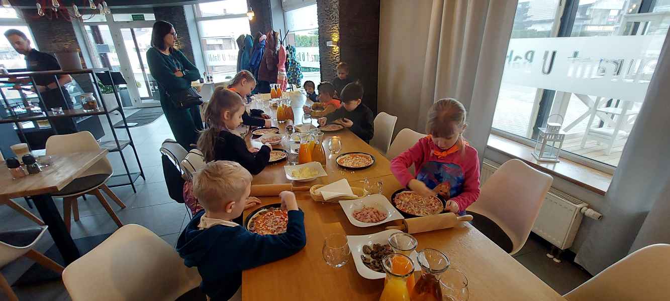 Klasa Ic uczestniczyła w "pysznych" warsztatach :) w restauracji "U Bąbli" w Bolszewie. Grupa miała okazję samodzielnie zobaczyć jak wygląda kuchnia, chłodnia oraz mroźnia oraz skomponować według własnych walorów smakowych pyszne i cieszące oko pizzerki :)