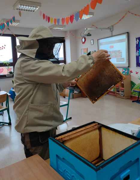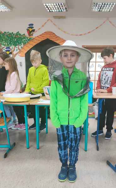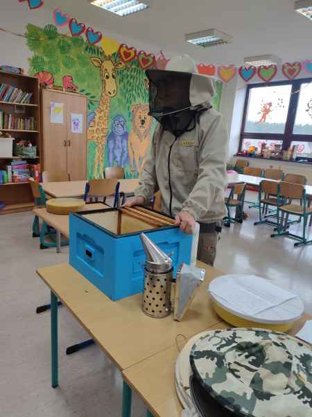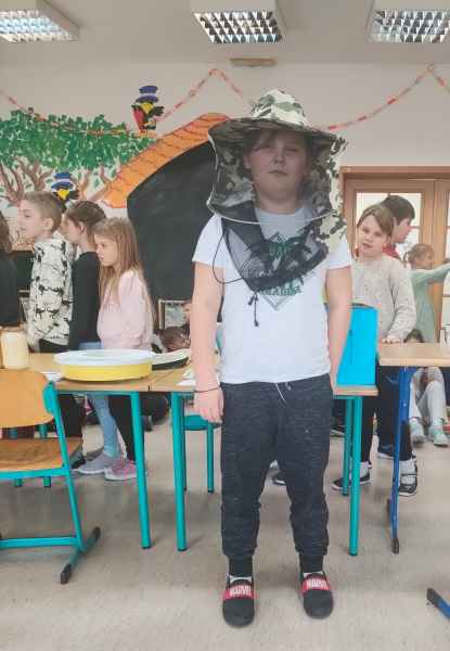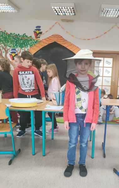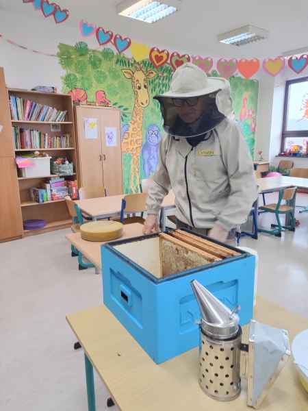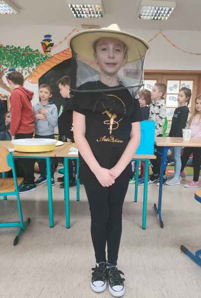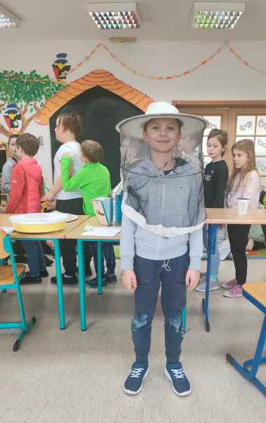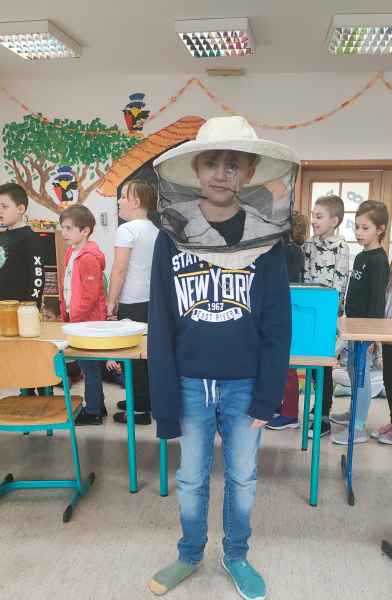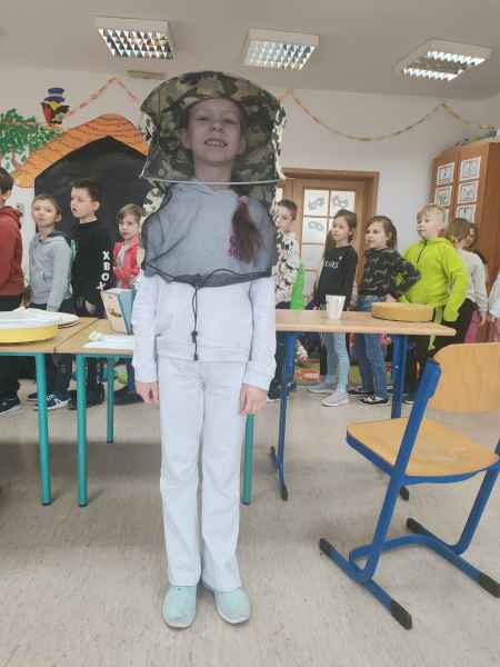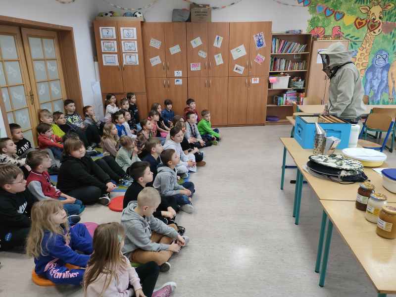 W ramach projektu edukacyjnego „Pożyteczne pszczoły” uczniowie klasy 2 A i 2 B wzięli udział w ciekawym spotkaniu z pszczelarzem. Pan Zygmunt Hazuka przedstawił wiele ciekawostek na temat pasieki, uli, rodzin pszczelich i roli tych pracowitych owadów.