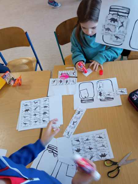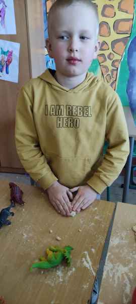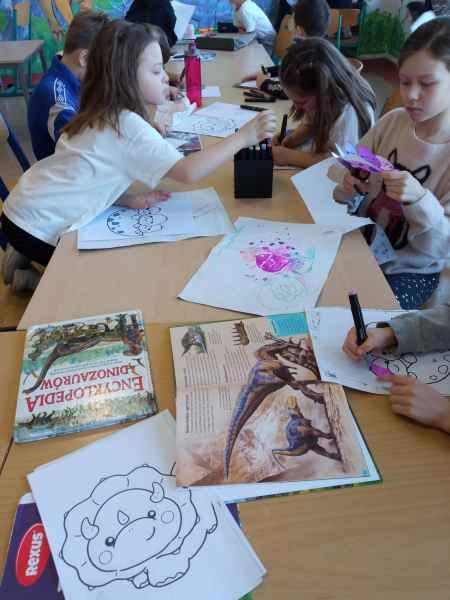 Podczas Dnia Dinozaura w świetlicy szkolnej uczniowie wcielili się w role paleontologów. Na każdym z przygotowanych przez Panie Świetliczanki stanowisku, uczniowie pogłębiali swoją wiedzę o pradawnych gadach: