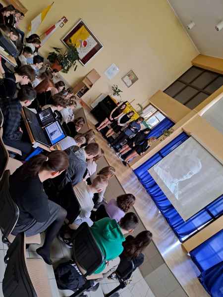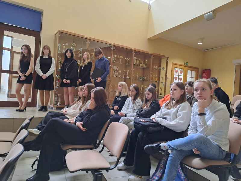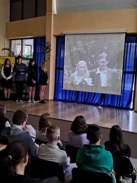 Prace ósmoklasistów stanowiły element dekoracyjny auli, na której zgromadzili się uczniowie, by obejrzeć prezentację wspomnianych wyżej Żołnierzy Wyklętych, przygotowaną przez Filipa Gąsiora z klasy VIII e oraz fragmenty filmów o bohaterach tamtych czasów.