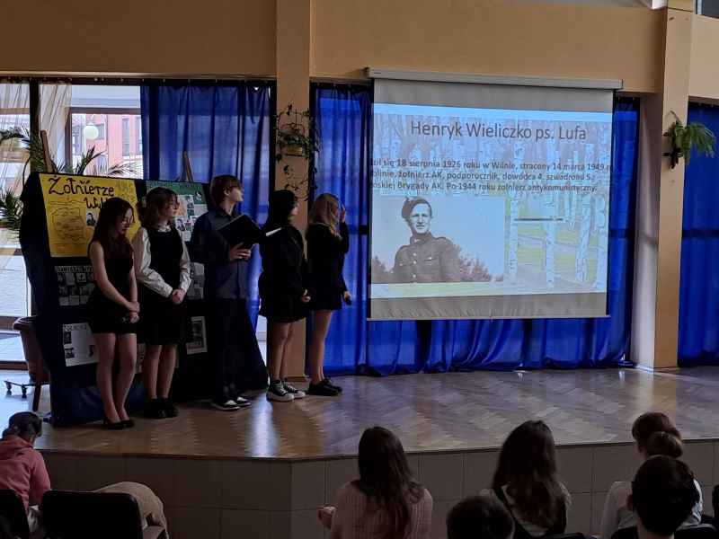 W związku z tym świętem uczniowie klas ósmych pod kierownictwem nauczycielki historii Pani Katarzyny Błędzkiej przygotowali plakaty nawiązujące do tamtych wydarzeń i przedstawiające bohaterów, między innymi Danutę Siedzikówną – Inkę, Zdzisława Badochę – Żelaznego, Witolda Pileckiego, Henryka Wieliczkę i innych.