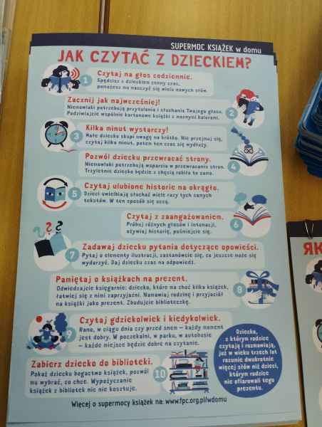 Fundacja Powszechnego Czytania. Dzieci otrzymały również kalendarzyki z poradnikiem dlaczego warto czytać dziecku od