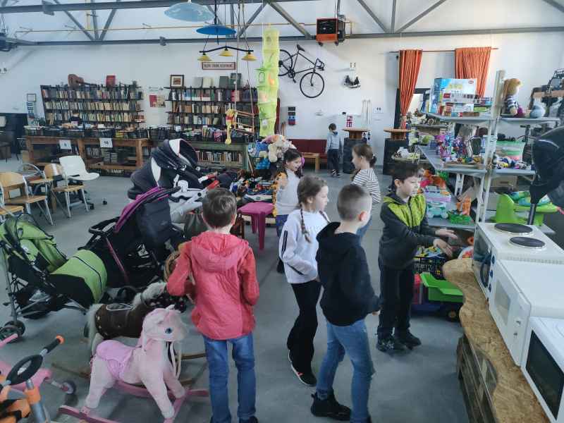 Uczniowie klas II A i II B uczestniczyli w ekowarsztatach w wejherowskiej EkoFabryce. Dzieci, w budynku zaadaptowanym w hali dawnej fabryki drzewnej, obejrzały bibliotekę z odzysku, skład rzeczy używanych, strefę recyklingu i upcyklingu. Wysłuchały kilku ciekawostek na temat powstania EkoFabryki, obejrzały zdjęcia sprzed remontu budynku oraz makietę całego terenu.