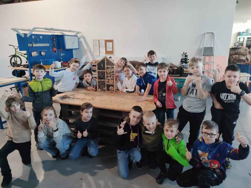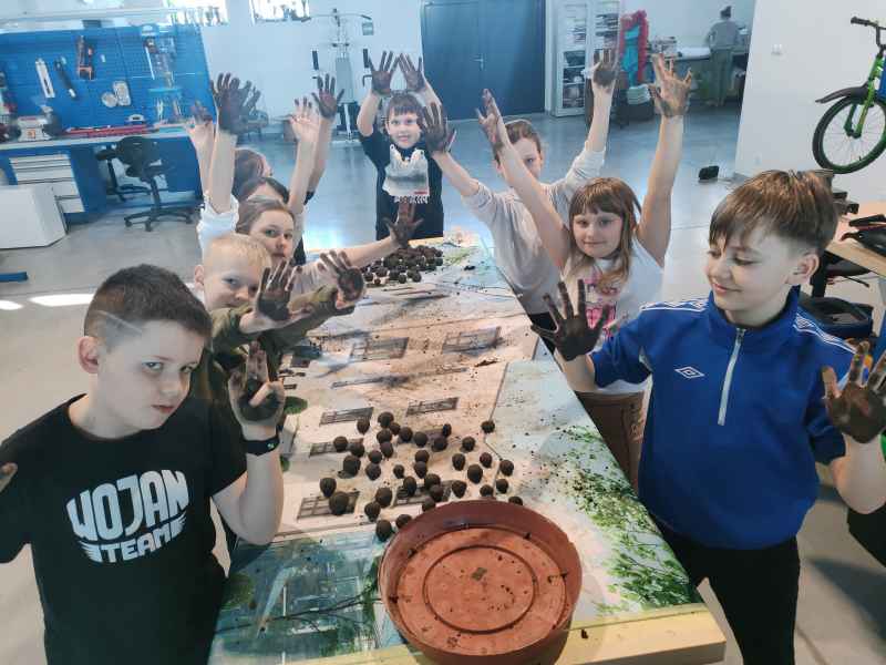 Na koniec drugoklasiści przystąpili do działania i wykonali kule z nasionami roślin miododajnych oraz domek dla owadów. Kwietna łąka, która urośnie za jakiś czas, oraz ekologiczne schronienie, m.in. dla biedronek, murarek, trzmieli, motyli będą małym wkładem dzieci w ochronę owadów pożytecznych i zachowanie bioróżnorodności oraz w równowagę w otaczającym nas środowisku.