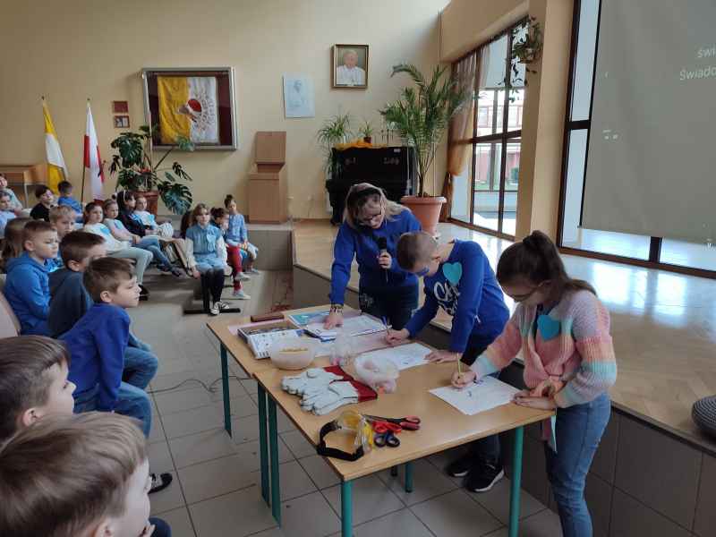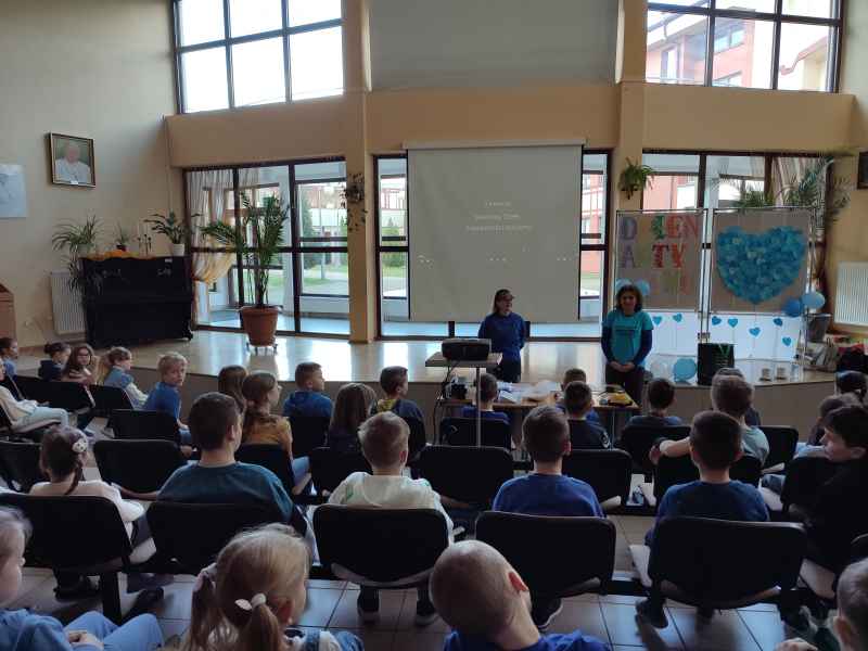 4 kwietnia uczniowie klas młodszych uczestniczyli w spotkaniu z przedstawicielkami Stowarzyszenia na Rzecz Autyzmu. Spotkanie dotyczyło odmienności postrzegania świata przez osoby ze spektrum autyzmu.