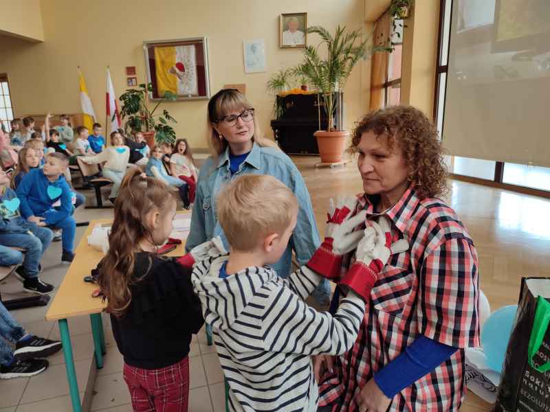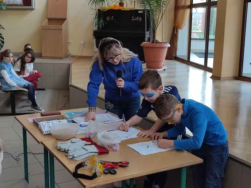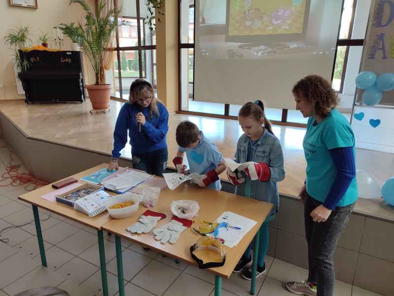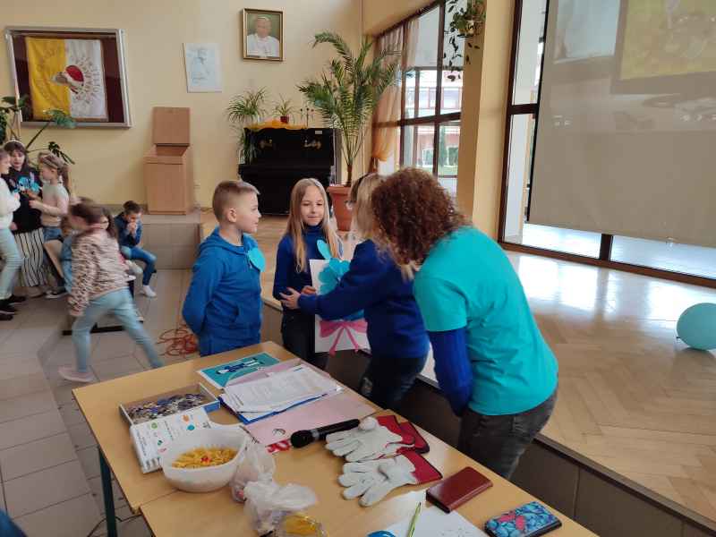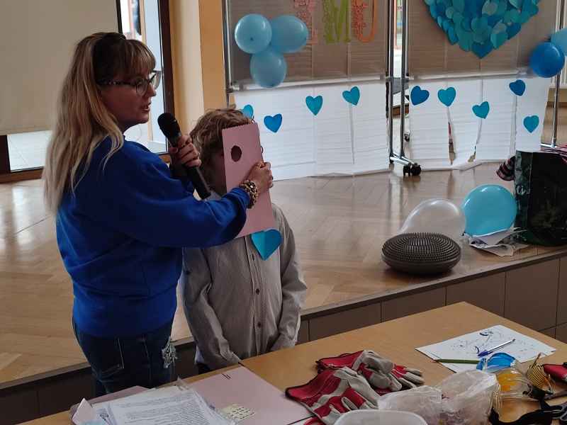 Dzieci mogły, poprzez praktyczne ćwiczenia, przekonać się na jakie trudności osoby z zaburzeniami ze spektrum autyzmu napotykają przy wykonywaniu wielu czynności, które mogą wydawać się proste, czy jak odbierają bodźce zewnętrzne. Spotkanie odbyło się w ramach edukacji włączającej i zostało zorganizowane przez panie Aleksandrę Szmidke i Anitę Walkusch.