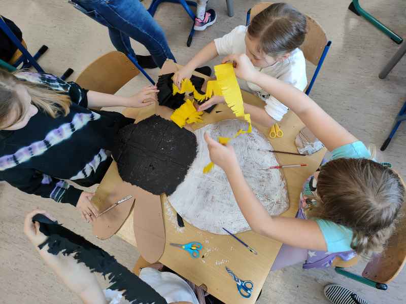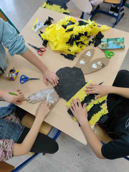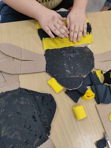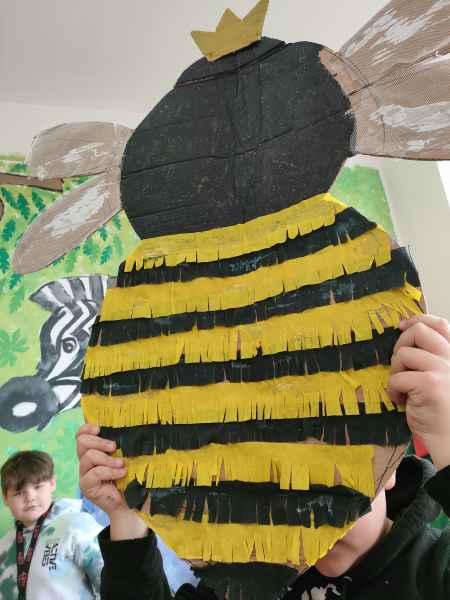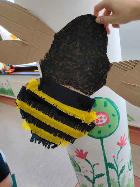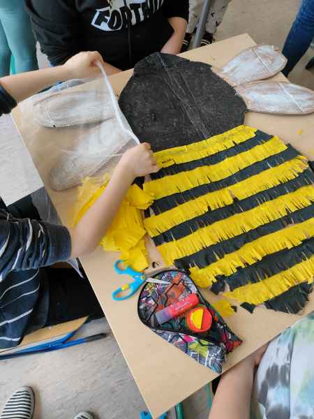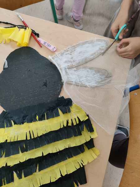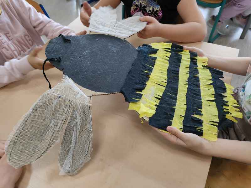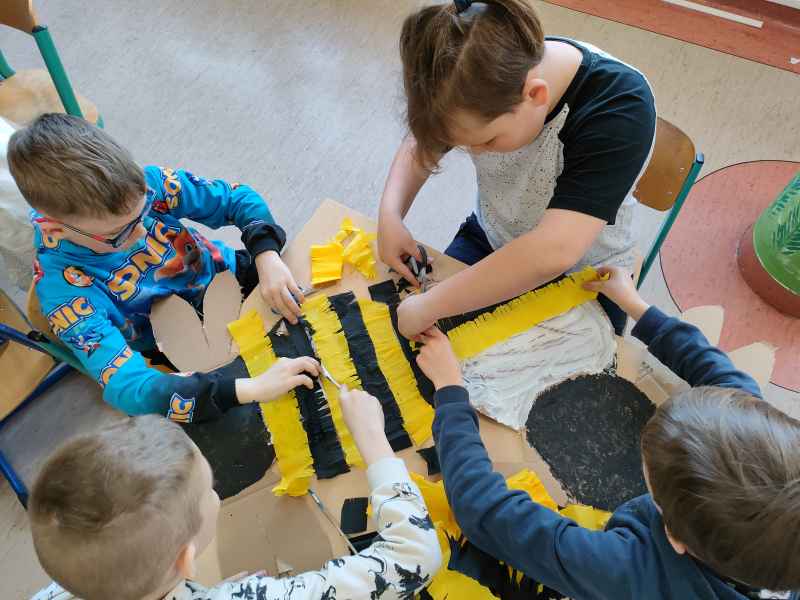 Po zajęciach teoretycznych i spotkaniu z pszczelarzem, teraz nadszedł czas na rozwój uzdolnień artystycznych i kreatywności u uczniów. Pod czujnym okiem artystki – plastyczki Marzeny Hazuka-Beraś dzieci wykonały przepiękne, wielkoformatowe sylwetki pszczół. W związku z tym, że królowa – także pszczela - może być tylko jedna, wyłoniono najpiękniejszą z nich i to ona stała się królową matką. Kilkoro uczniów pracowało także nad wykonaniem mieszkania dla pszczół, czyli ula.